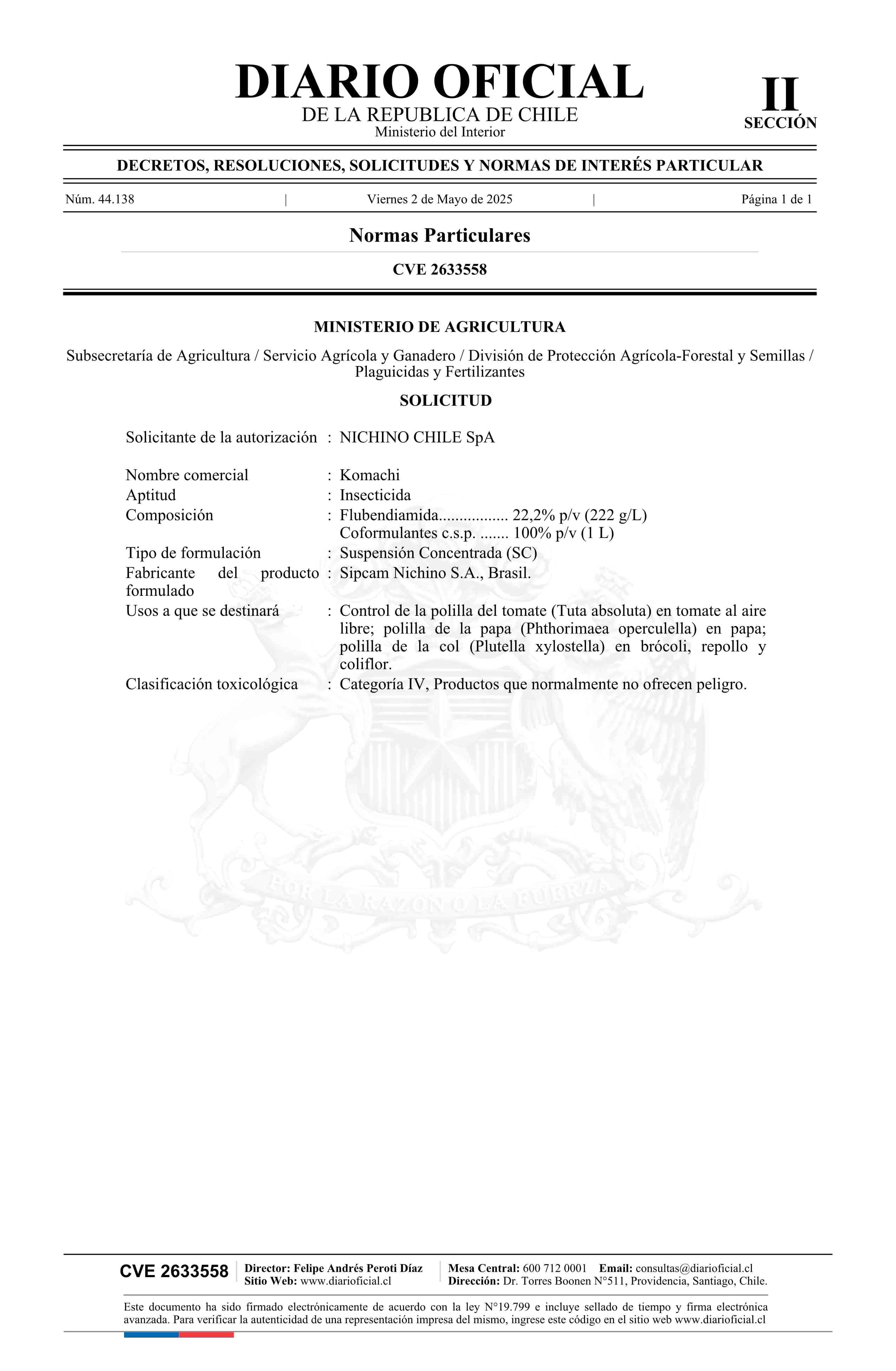 Solicitud Nichino Chile SpA 02-05-2025 Diario Oficial Edición Electrónica |