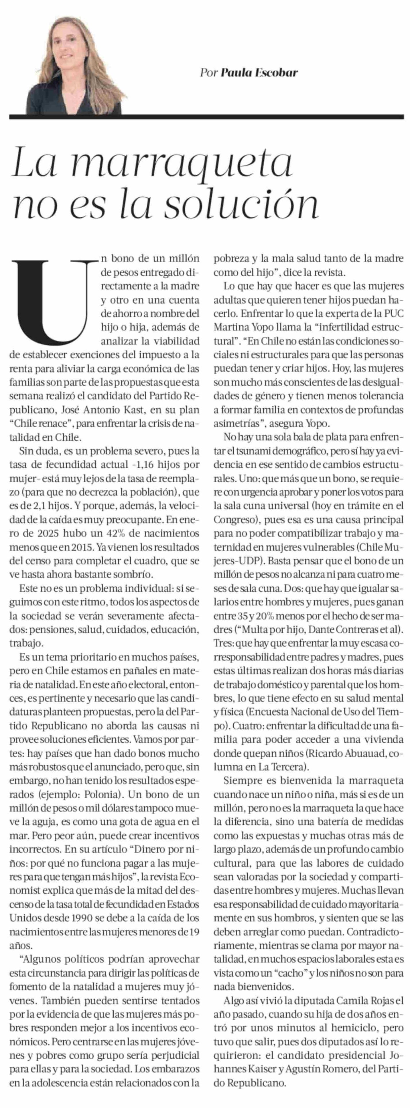 Columnas de Opinión: La marraqueta no es la solución 27-04-2025 La Tercera |