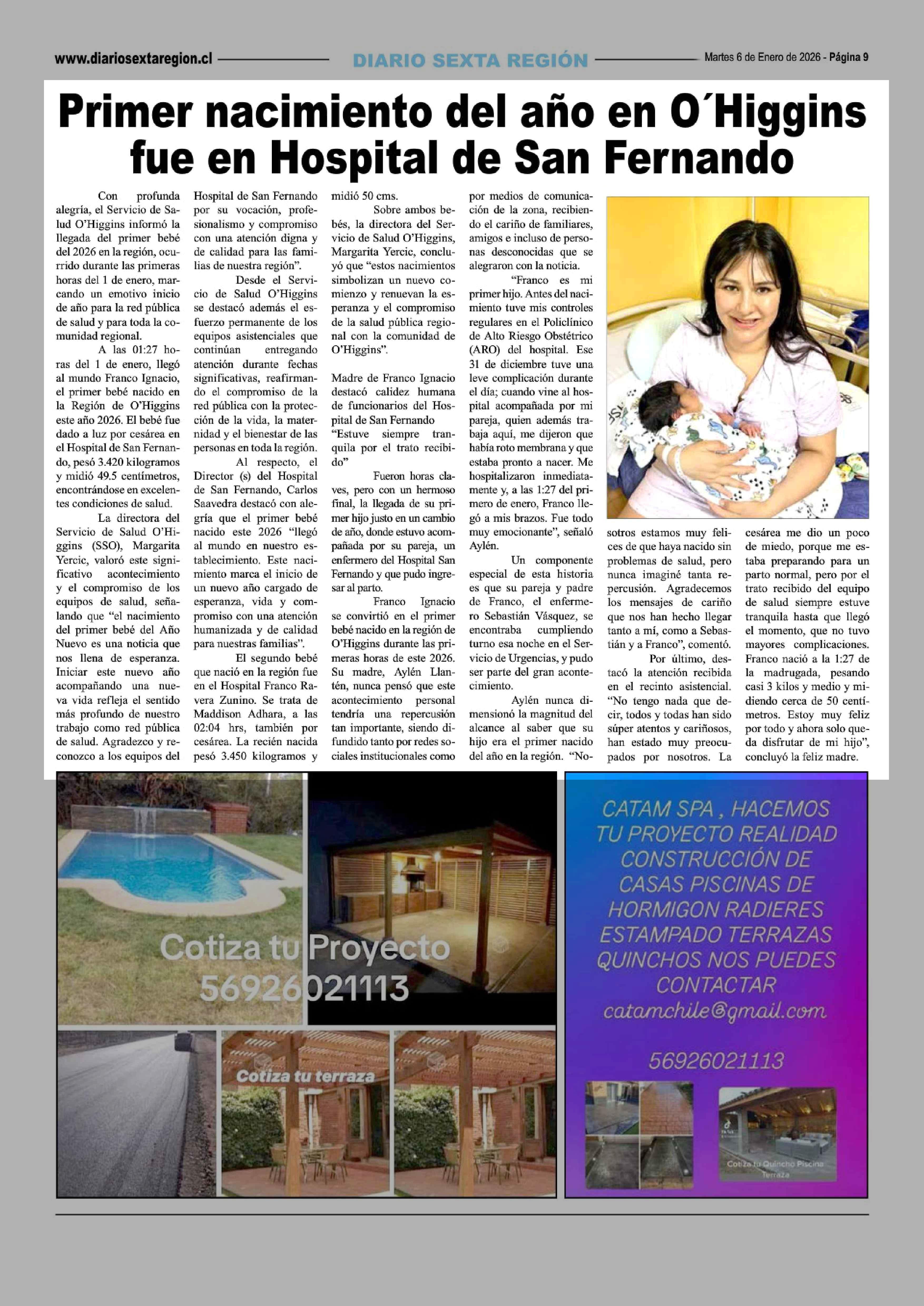 Fuente: Diario VI Región (Diario VI Región) Página(s): 9