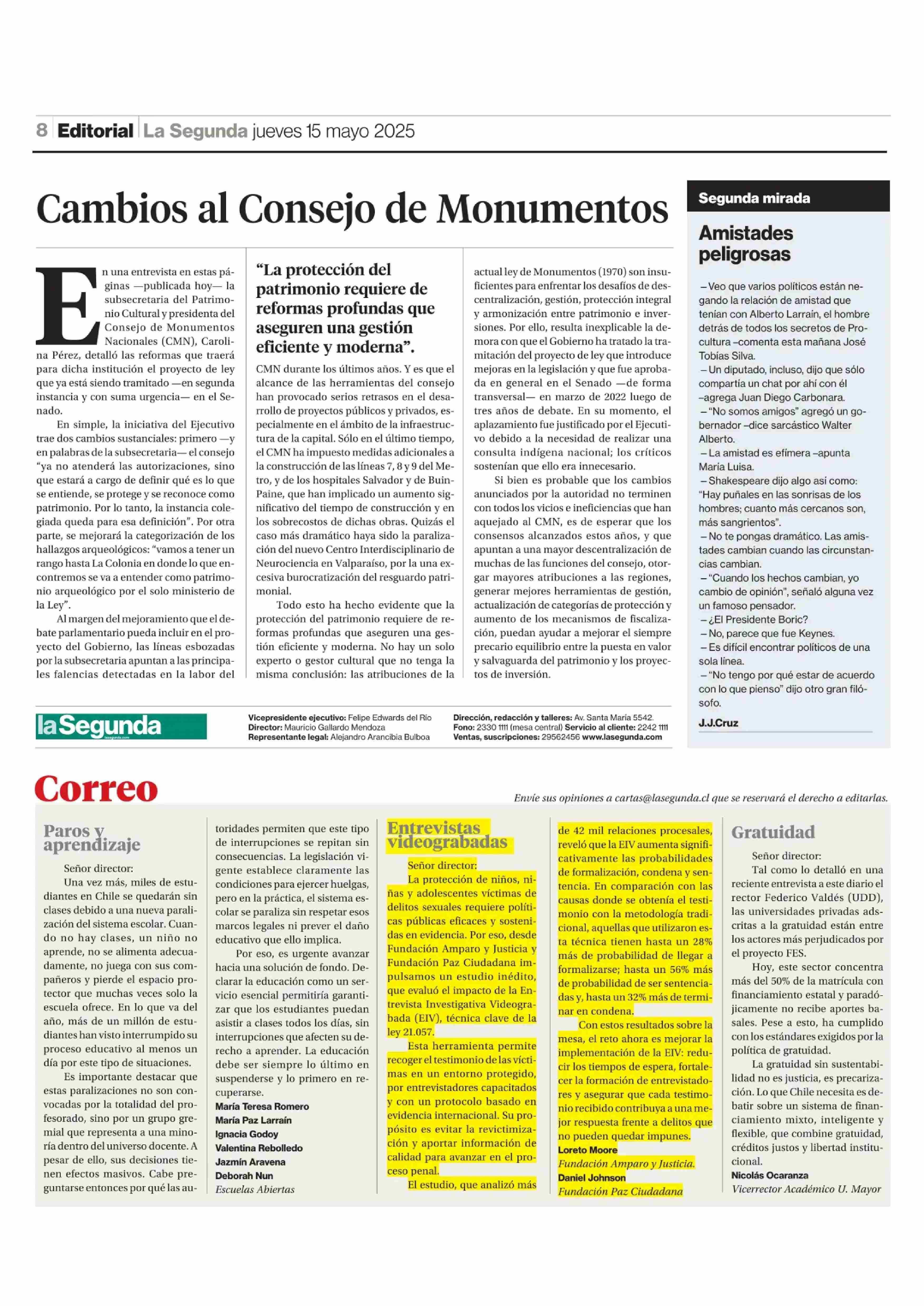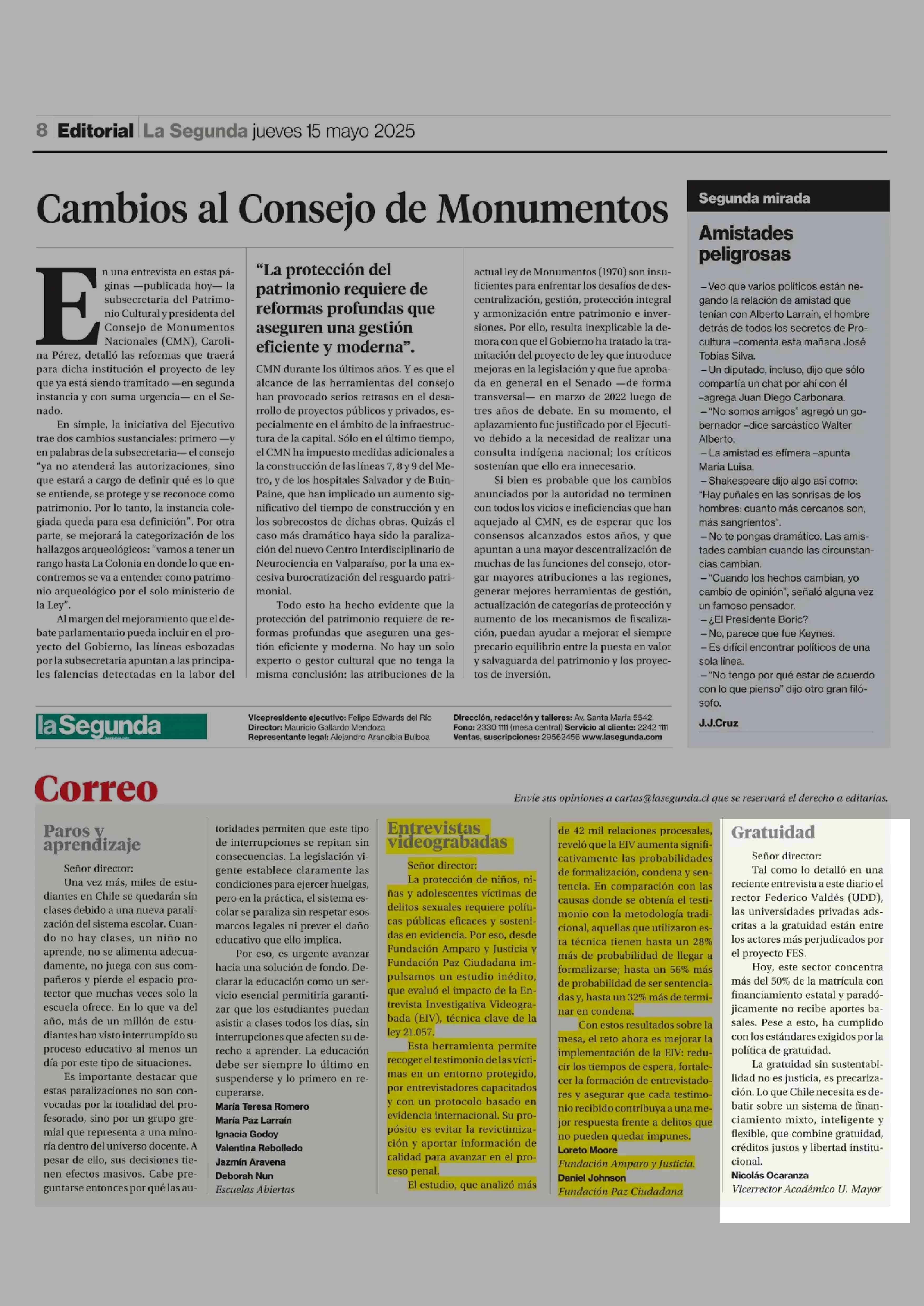 CARTAS: Gratuidad 15-05-2025 La Segunda |