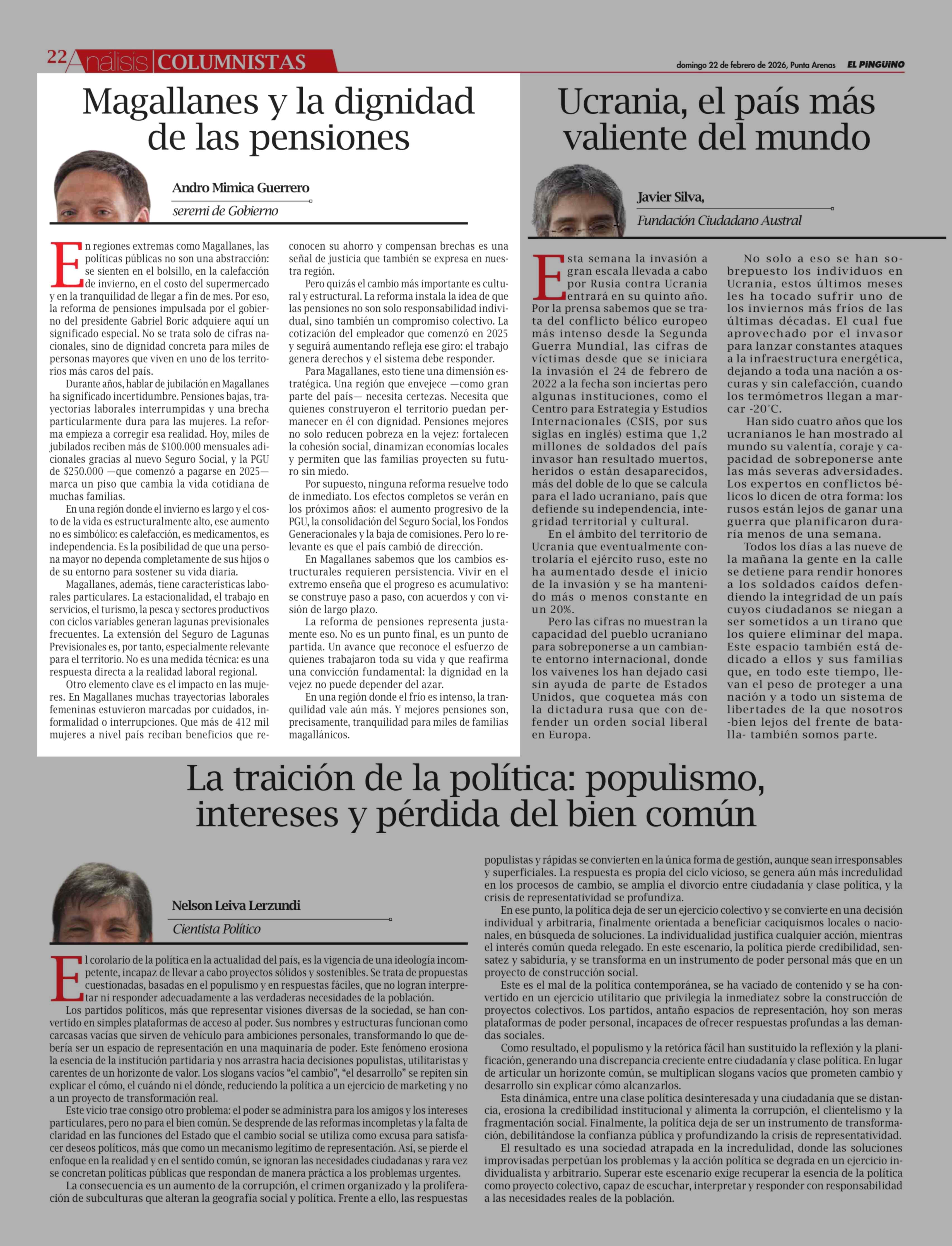 | Fecha: | 22-02-2026 | Sector: | Columnas de Opinión | Región: | Región de Magallanes y de la Antártica Chilena |