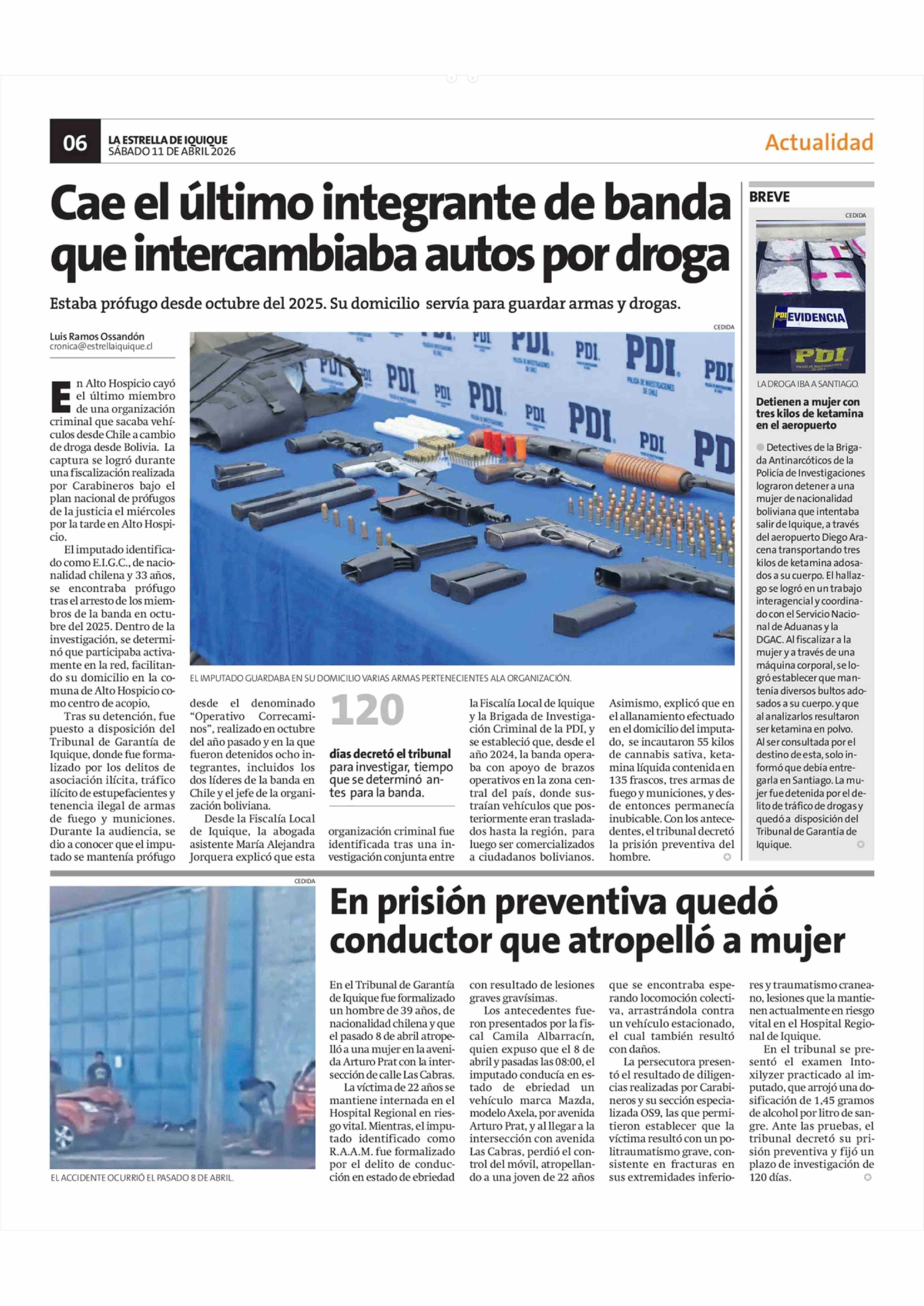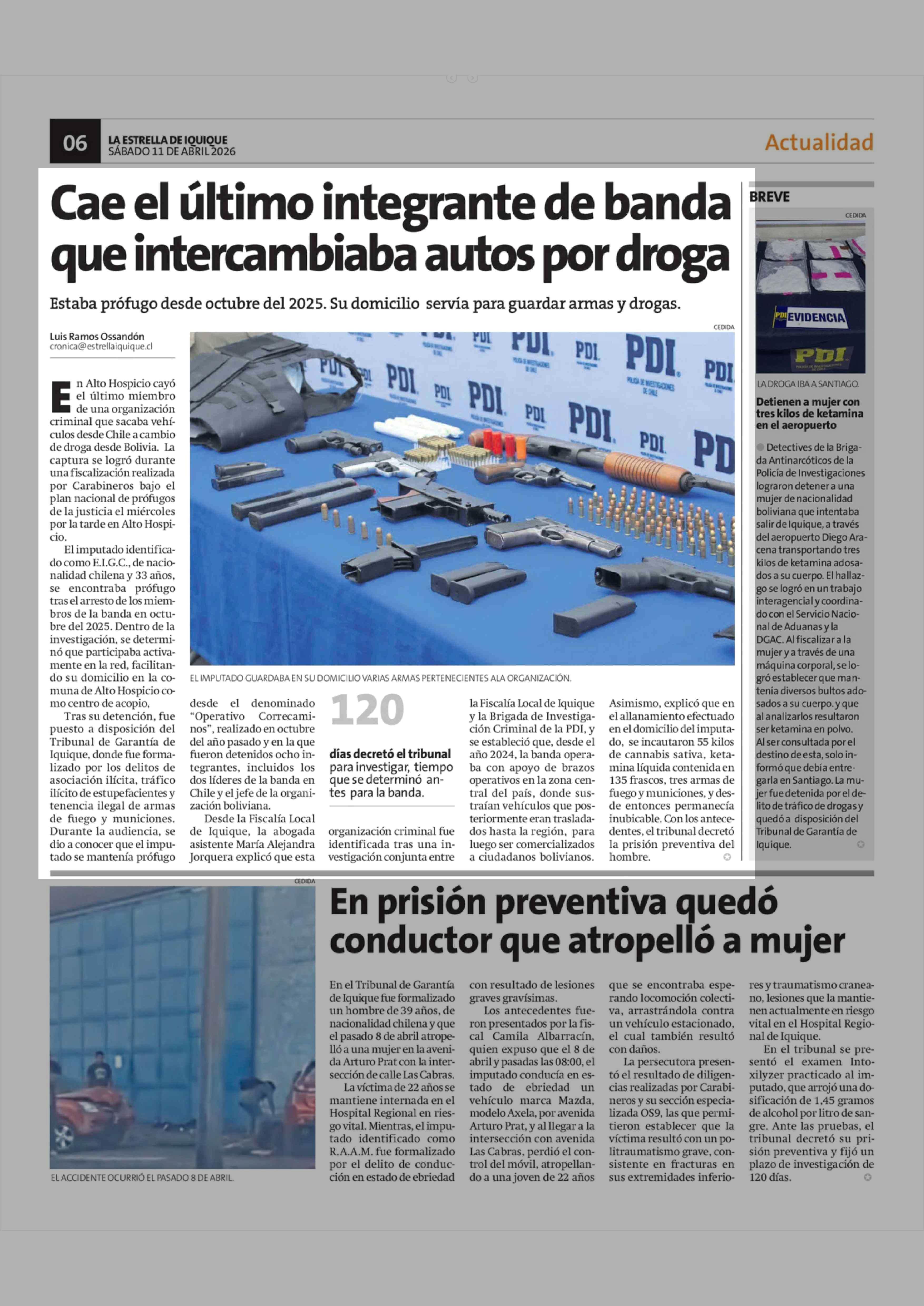 Cae el último integrante de banda que intercambiaba autos por droga 11-04-2026 La Estrella de Iquique |