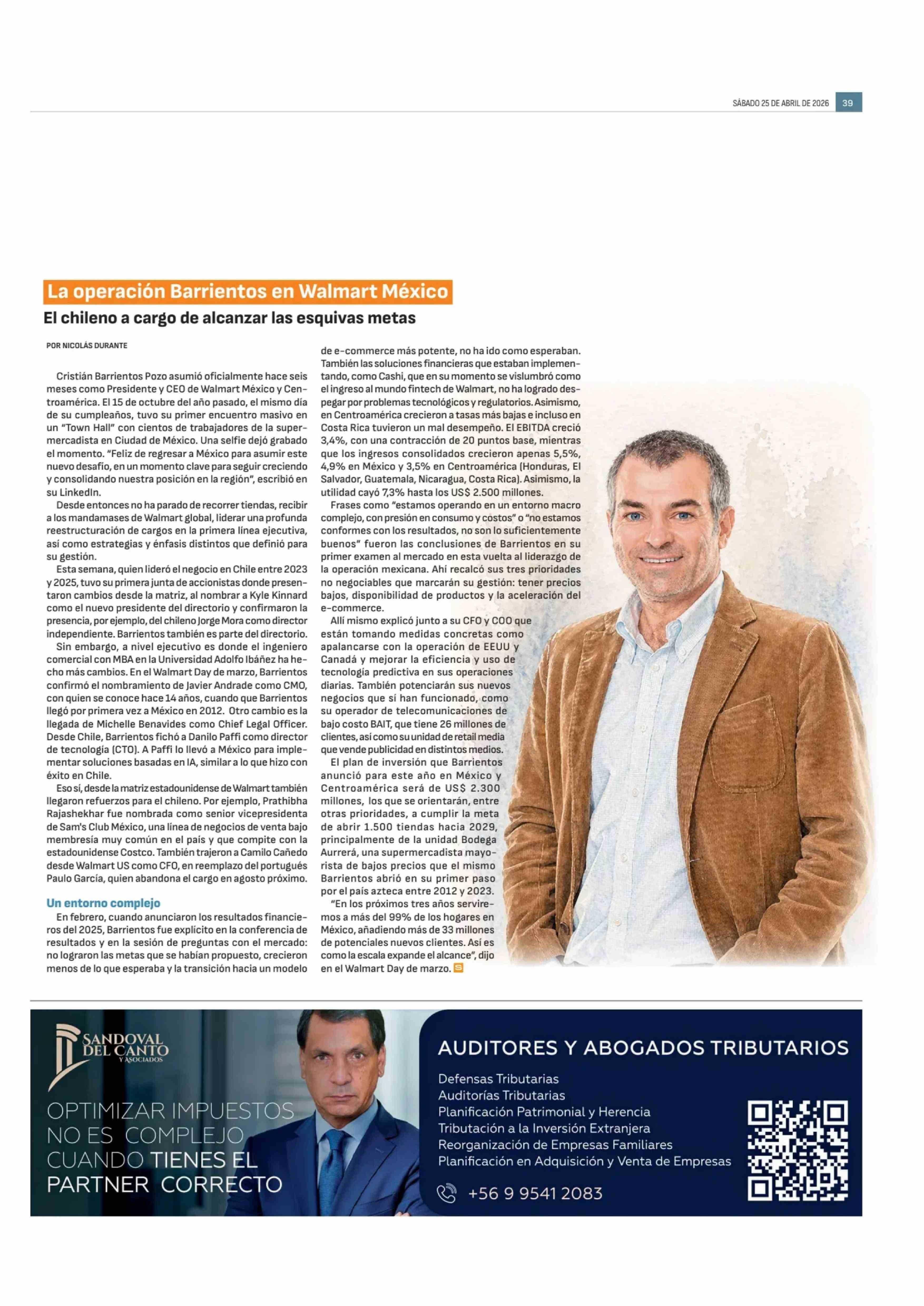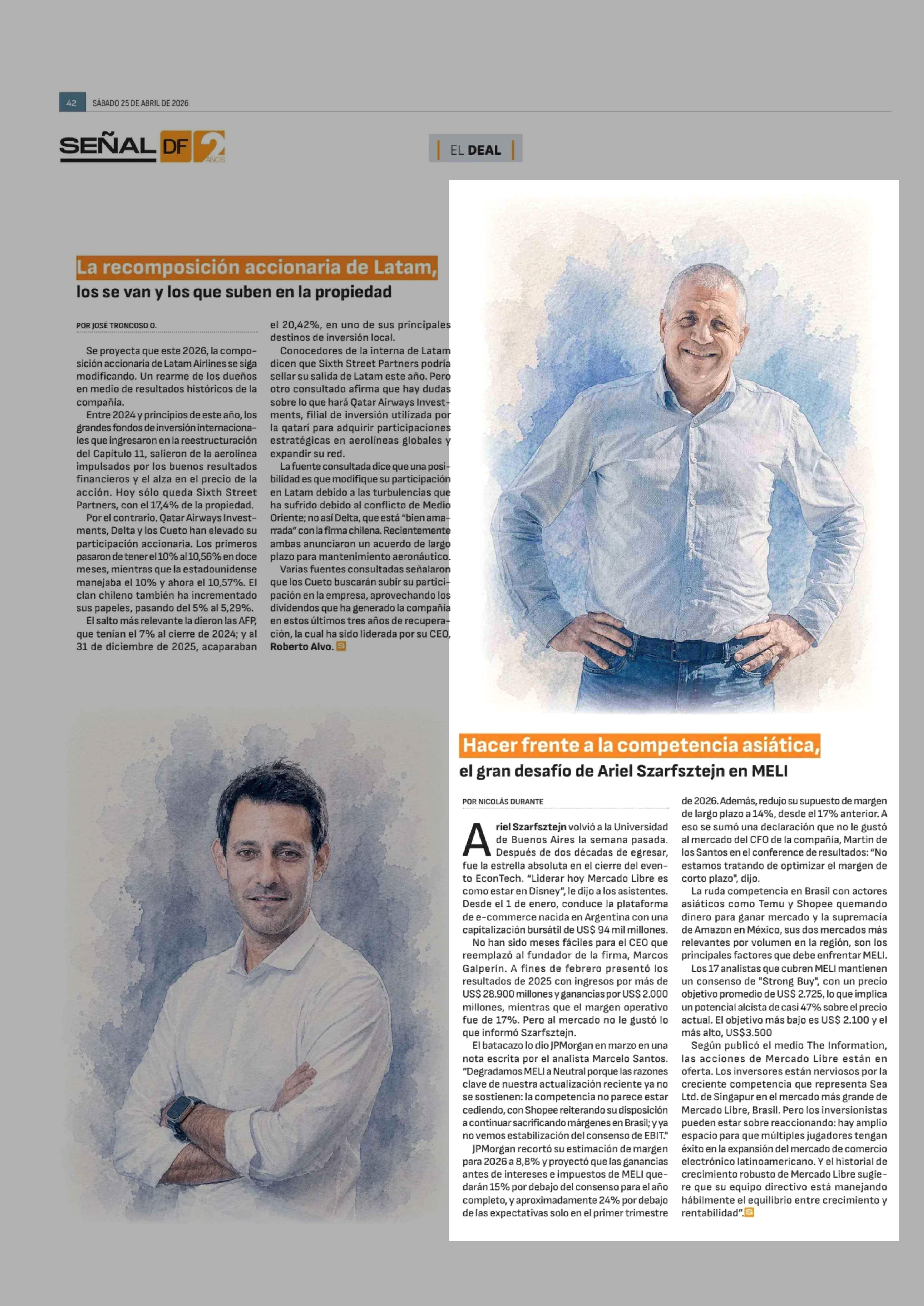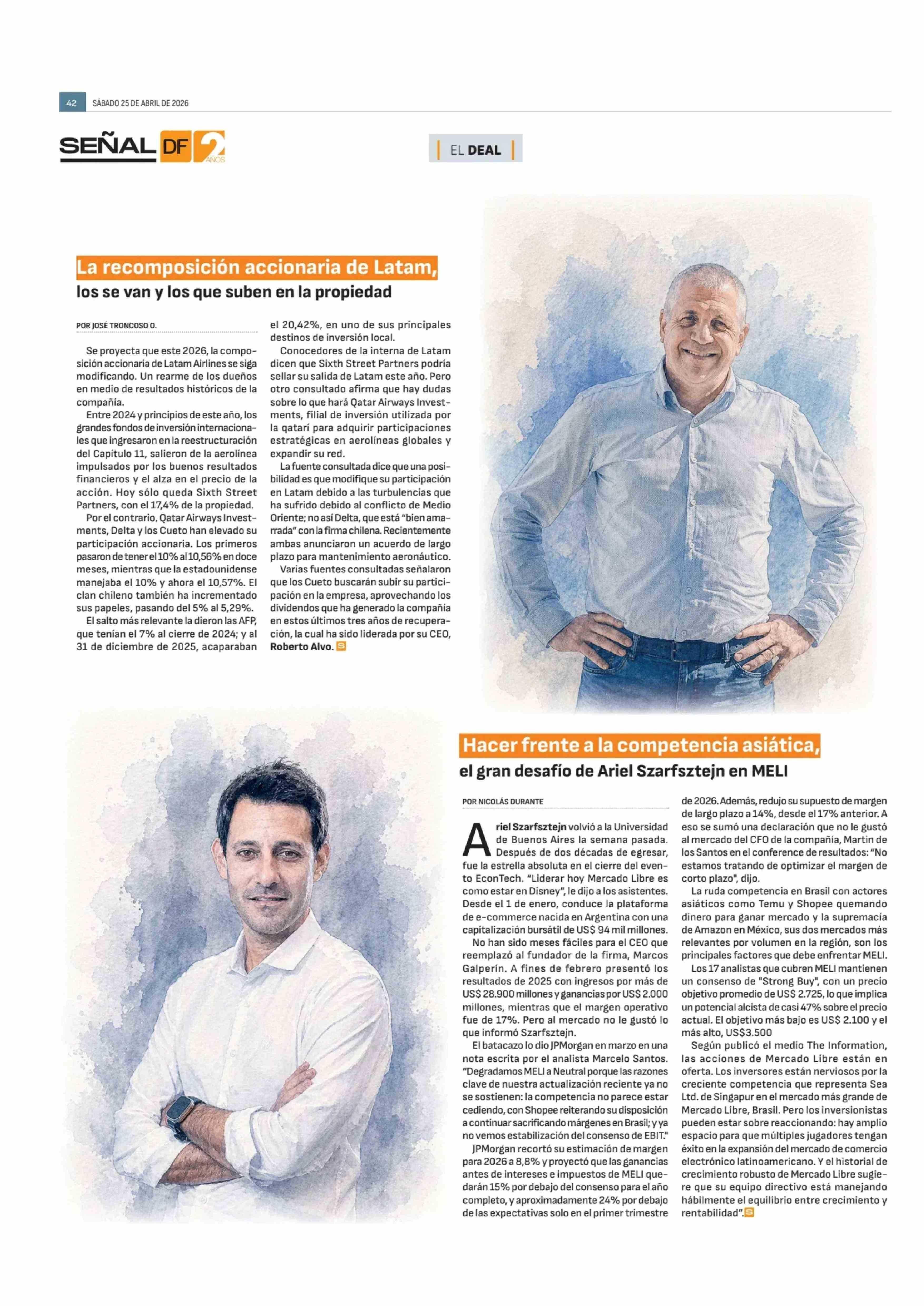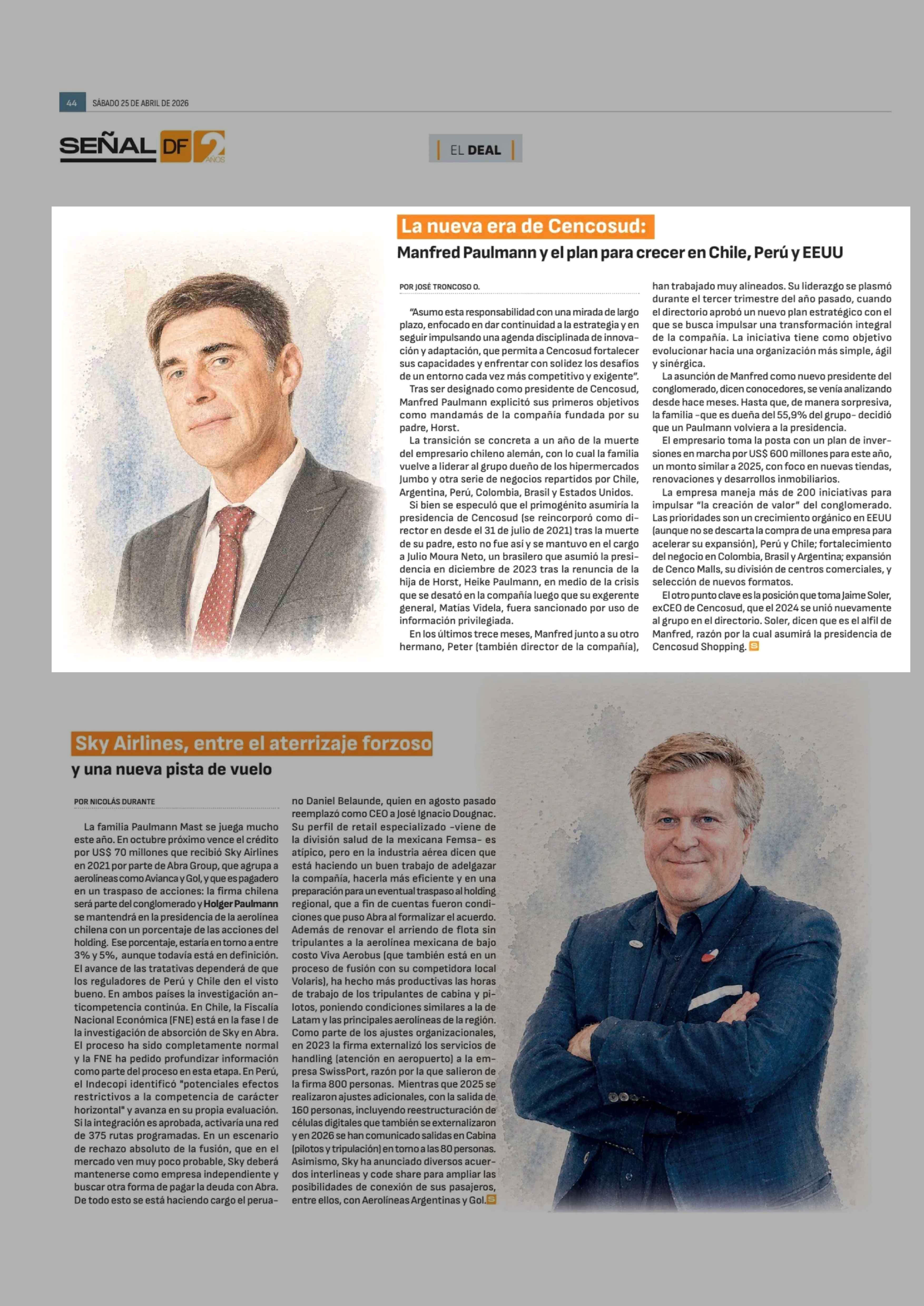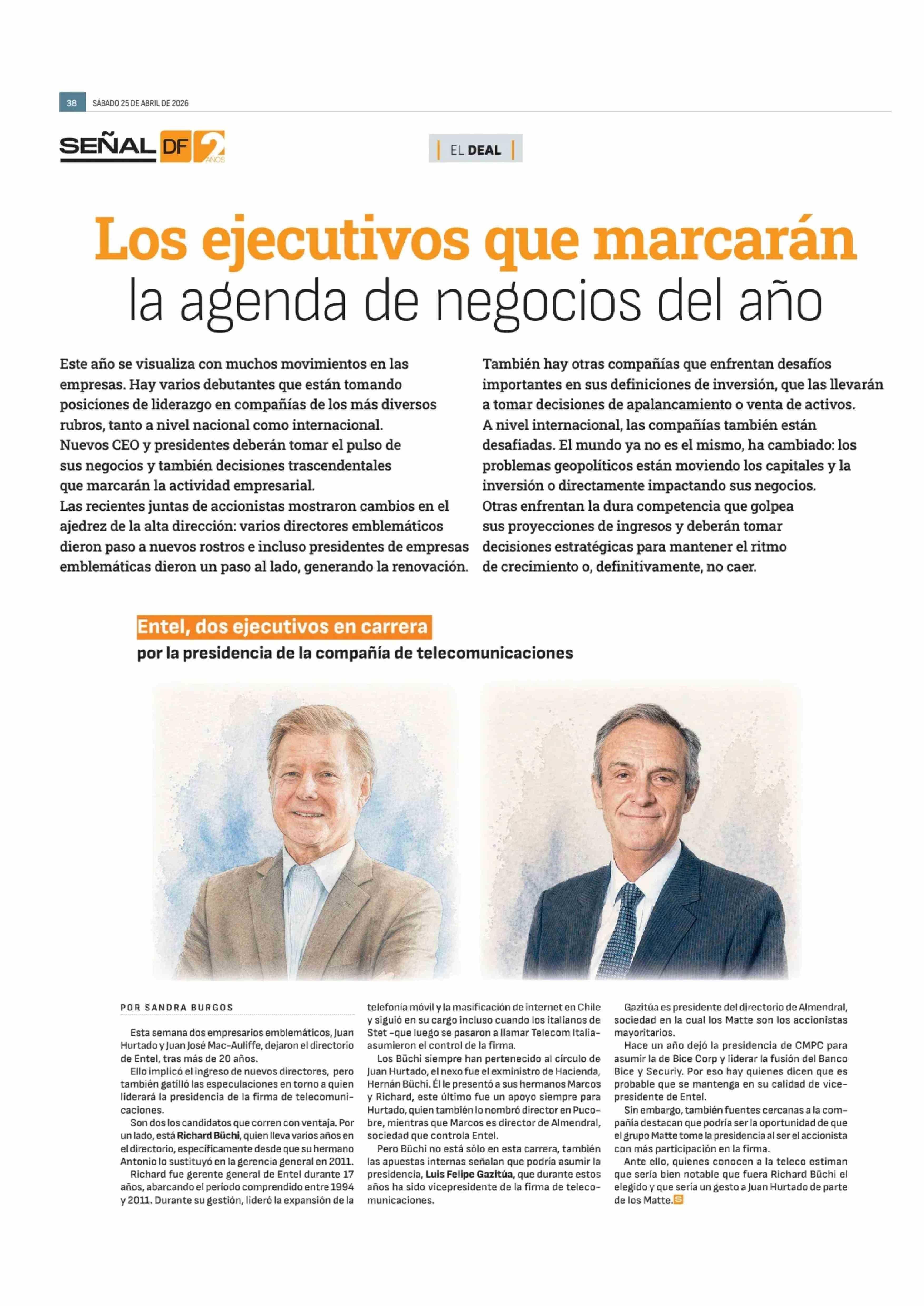 Los ejecutivos que marcarán la agenda de negocios del año 25-04-2026 Diario Financiero |