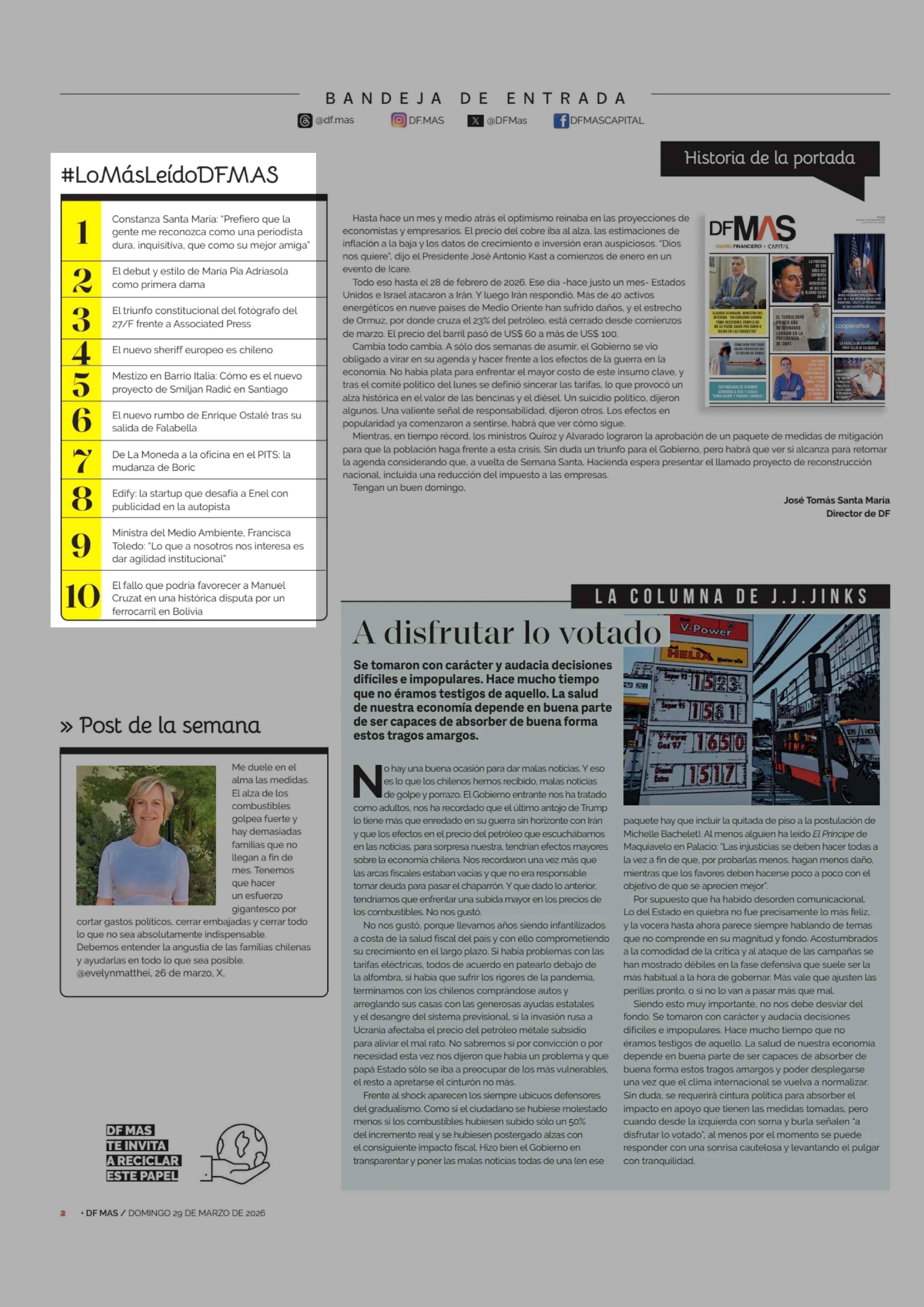 #LoMásLeídoDFMAS 29-03-2026 Diario Financiero |