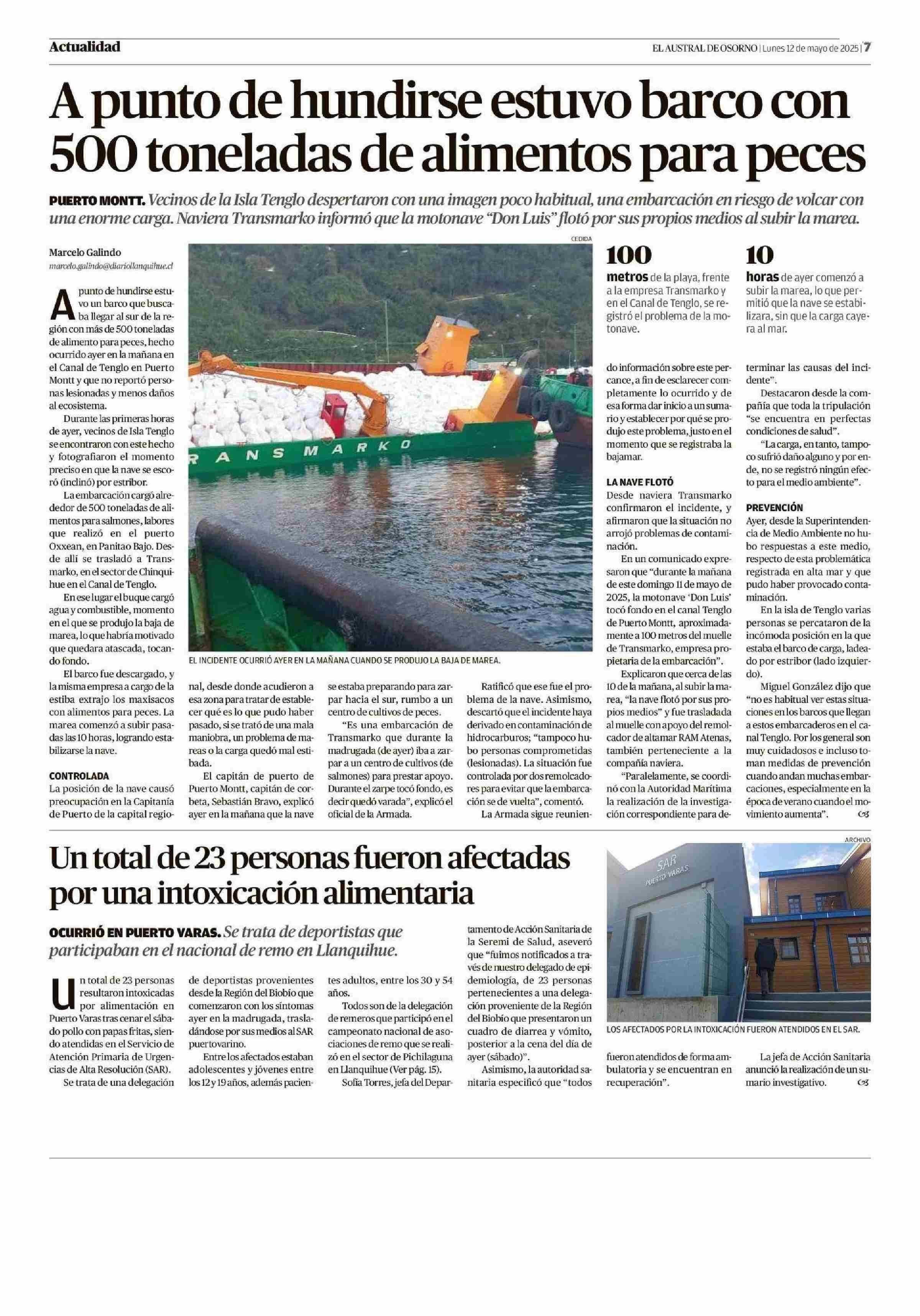 | Fecha: | 12-05-2025 | Sector: | Noticia general | Región: | Región de Los Lagos |