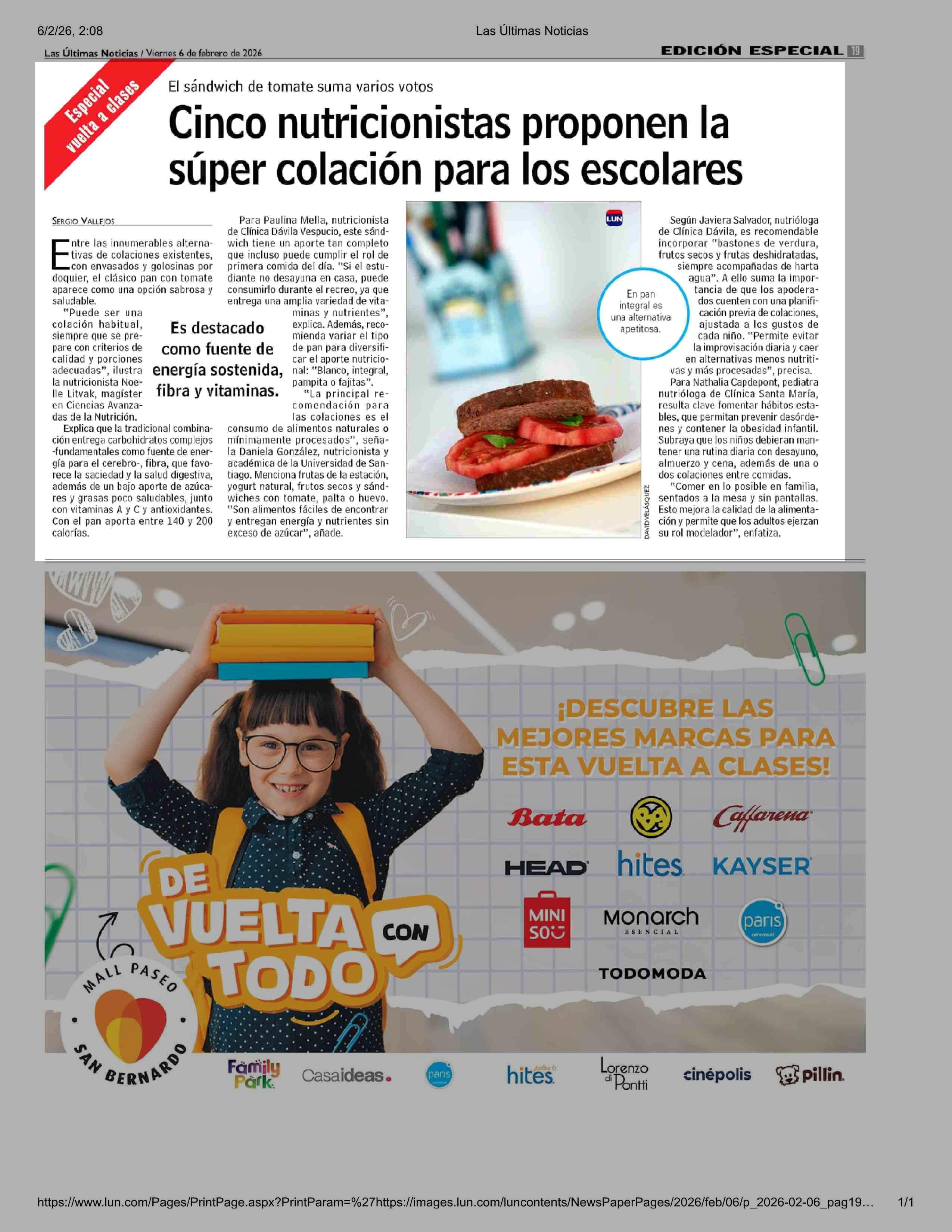 Título: Cinco nutricionistas proponen la súper colación para los escolares