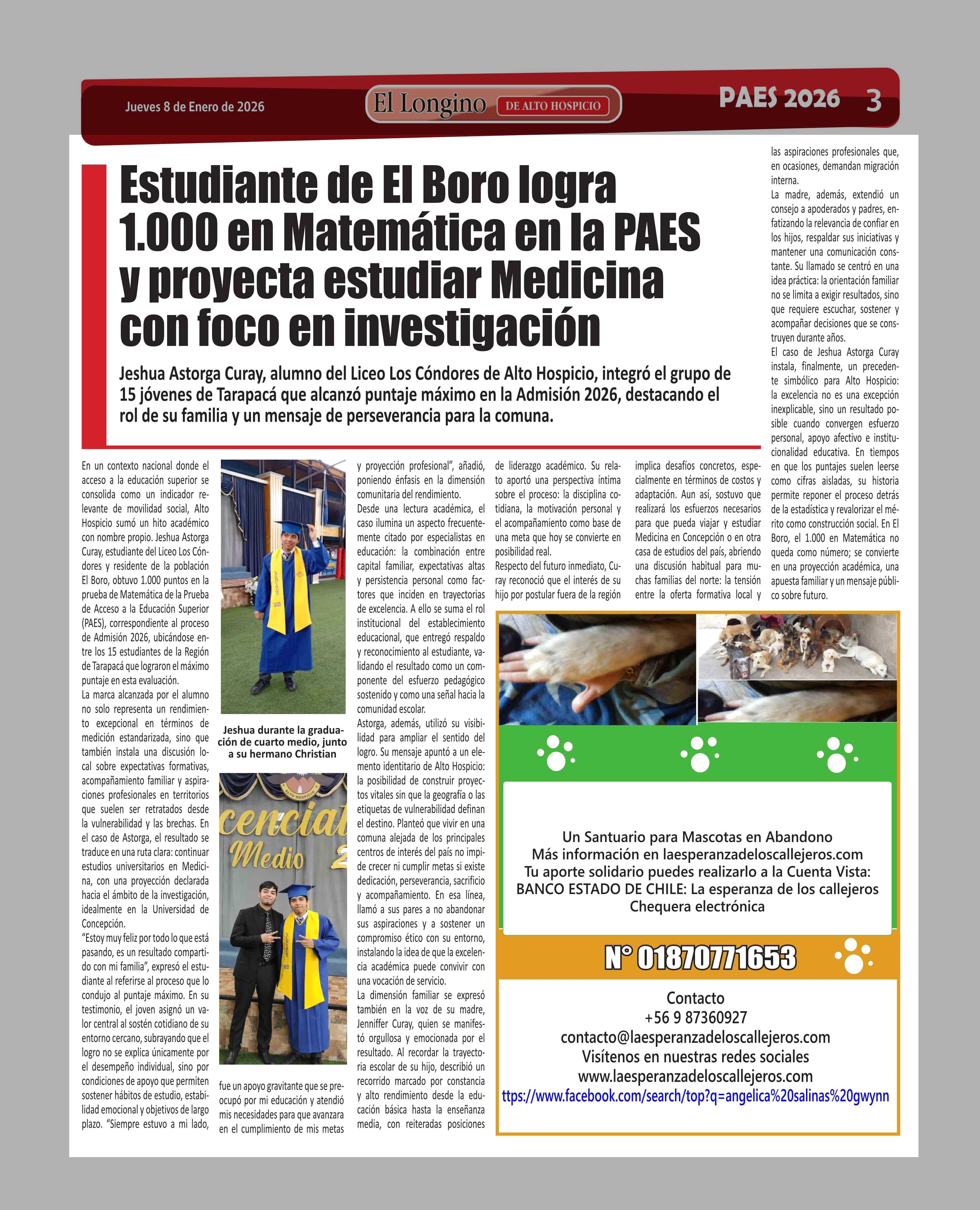 Estudiante de El Boro logra 1.000 en Matemática en la PAES y proyecta estudiar Medicina con foco en investigación 08-01-2026 El Longino |