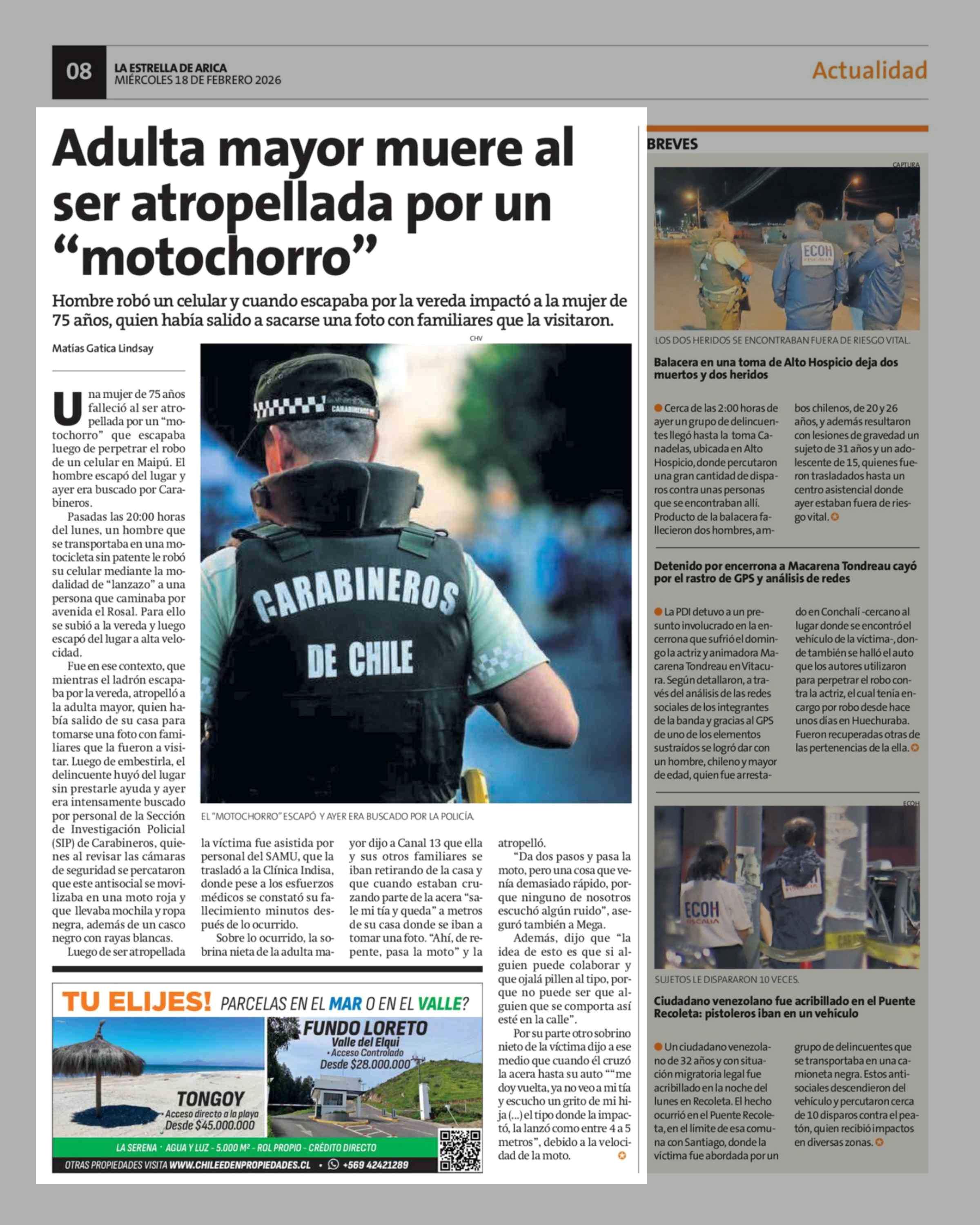 Fecha: 18-02-2026 Sector: Noticia general Región: Región de Arica y Parinacota