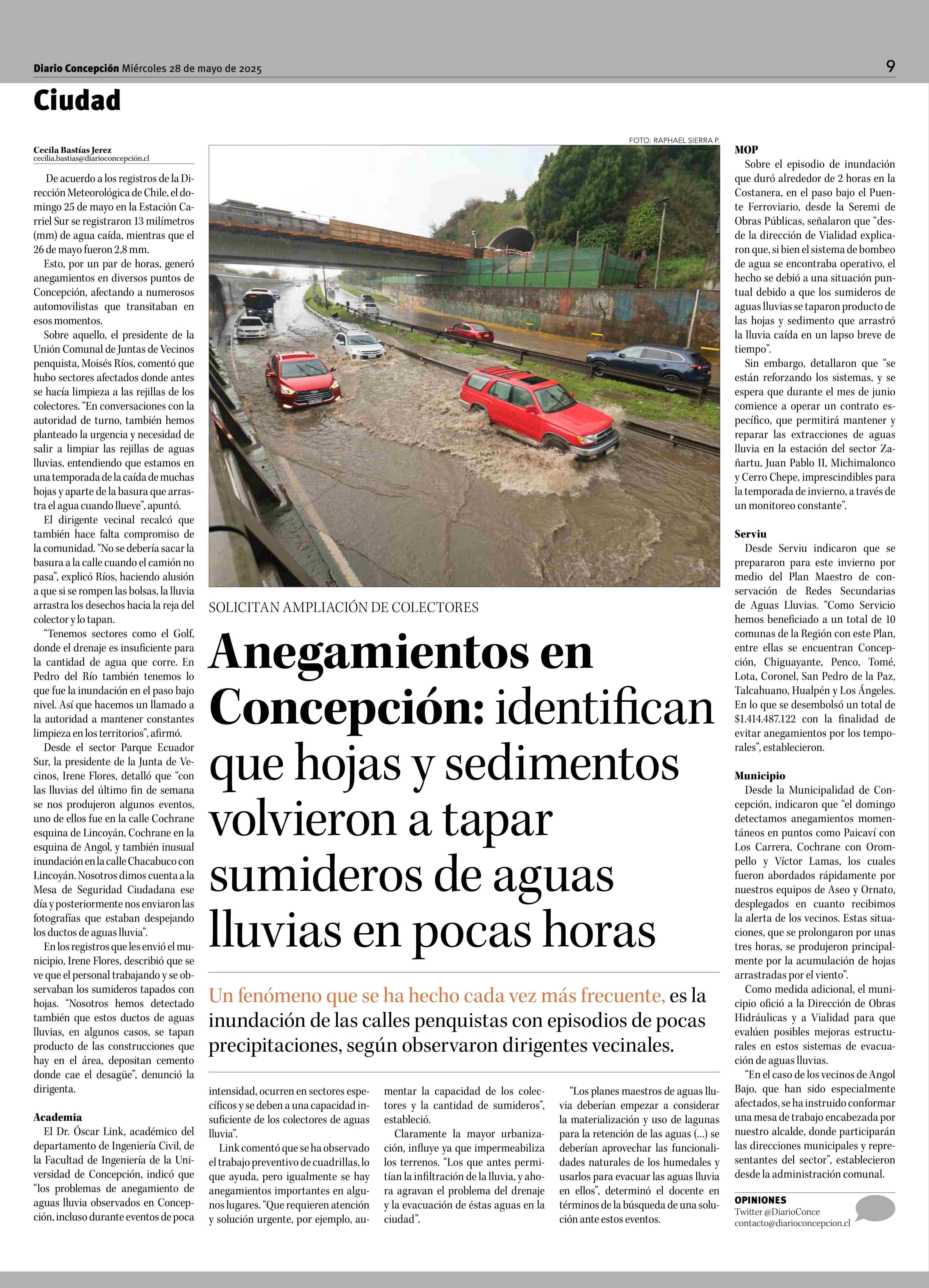 Título: Anegamientos en Concepción: identifican que hojas y sedimentos volvieron a tapar sumideros de aguas lluvias en pocas horas