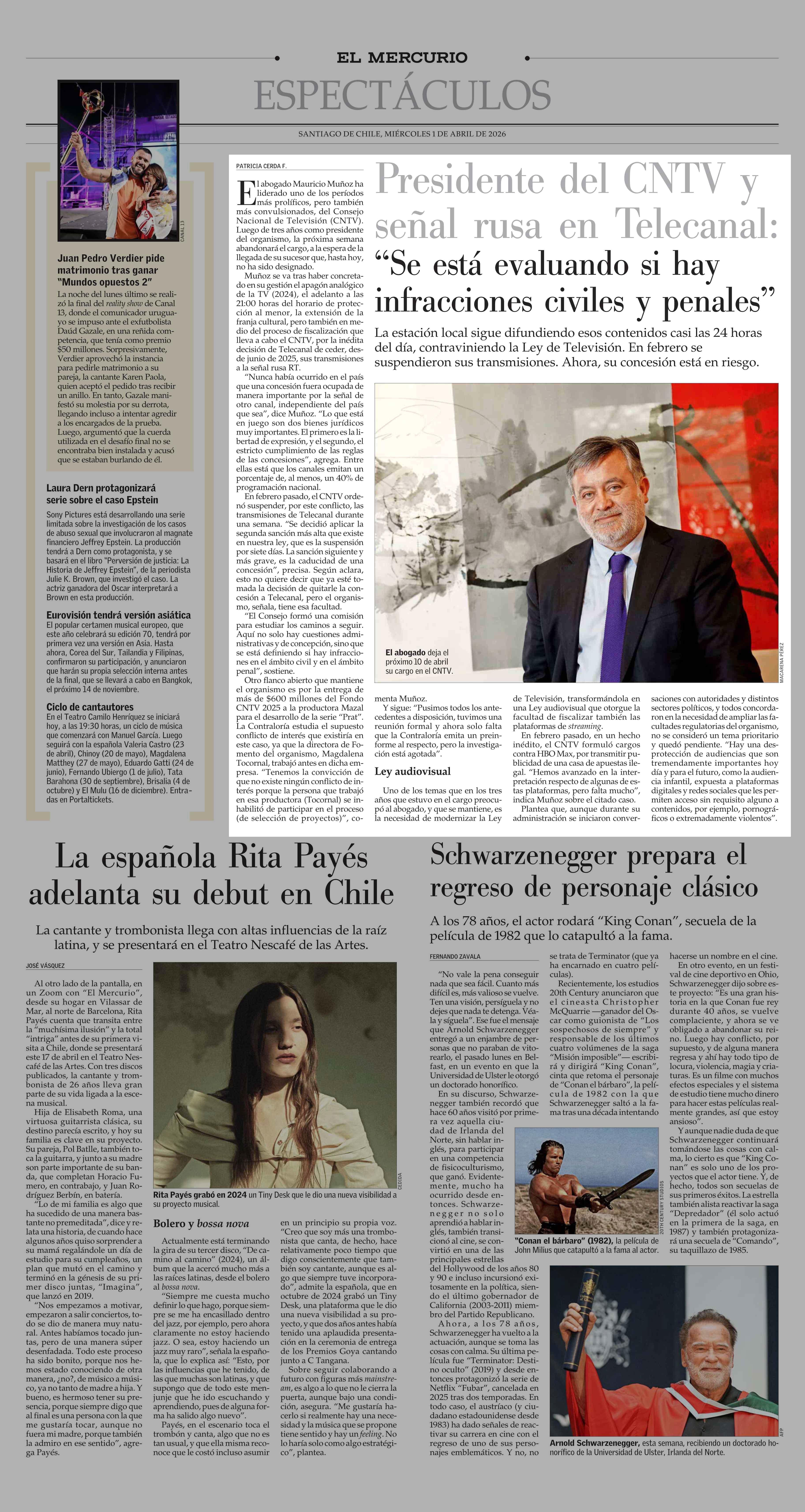 Presidente del CNTV y señal rusa en Telecanal: “Se está evaluando si hay infracciones civiles y penales” 01-04-2026 El Mercurio |