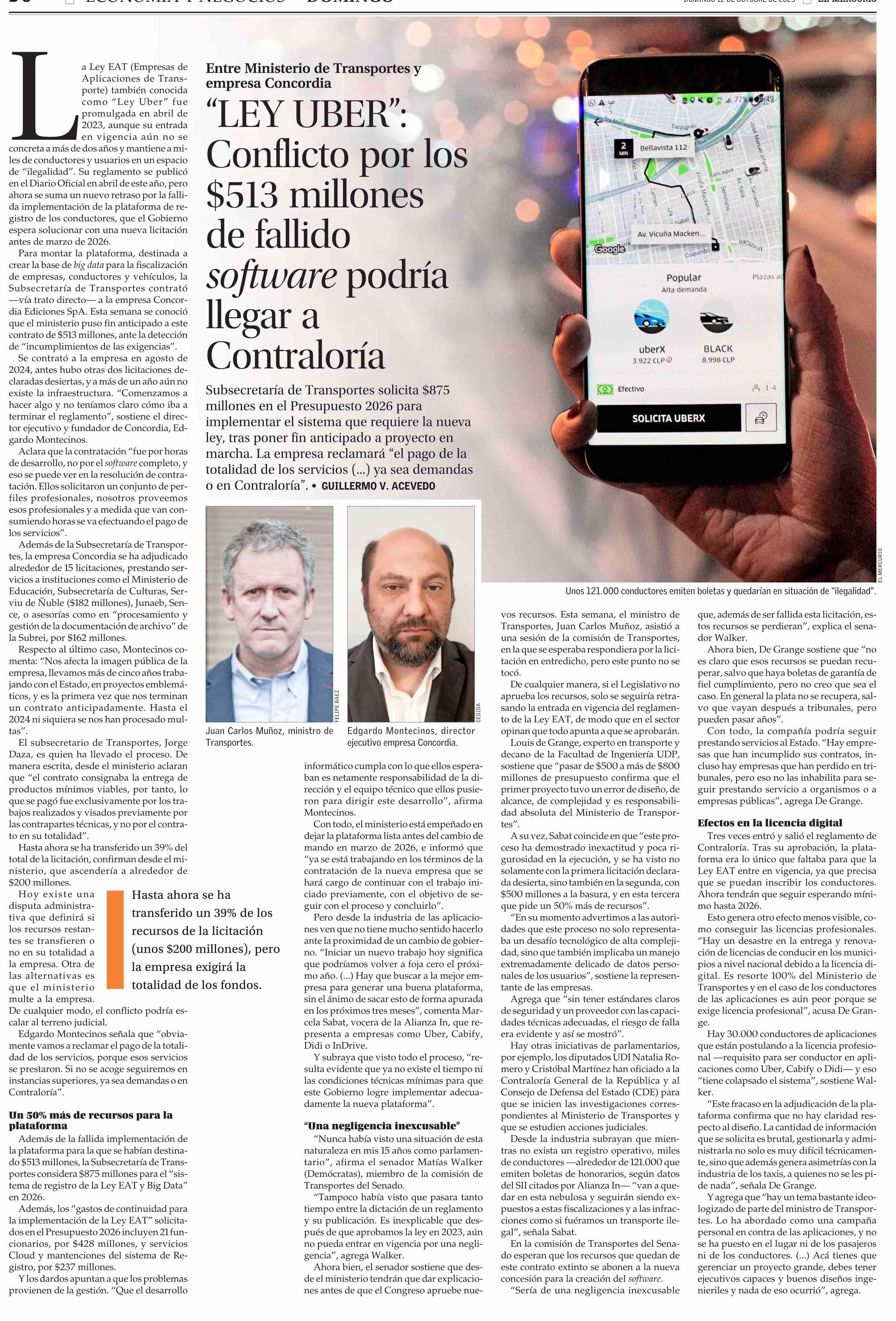 Título: “LEY UBER”: Conflicto por los $513 millones de fallido software podría llegar a Contraloría
