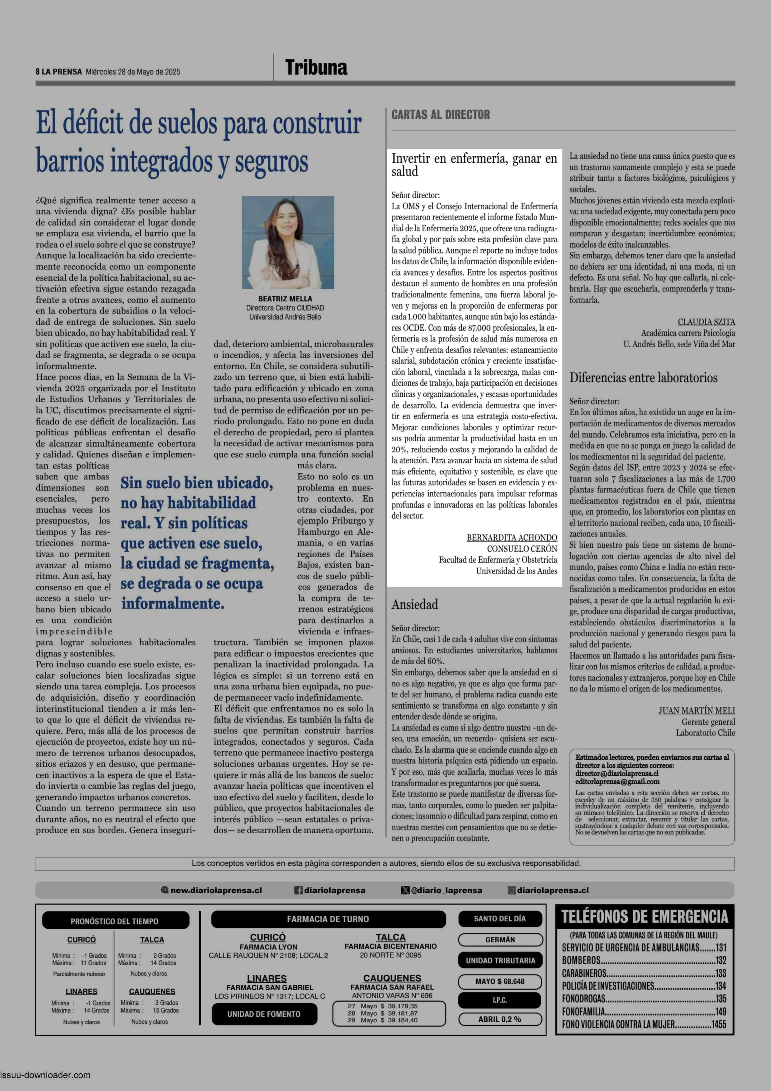 CARTAS: Invertir en enfermería, ganar en salu 28-05-2025 La Prensa de Curicó |