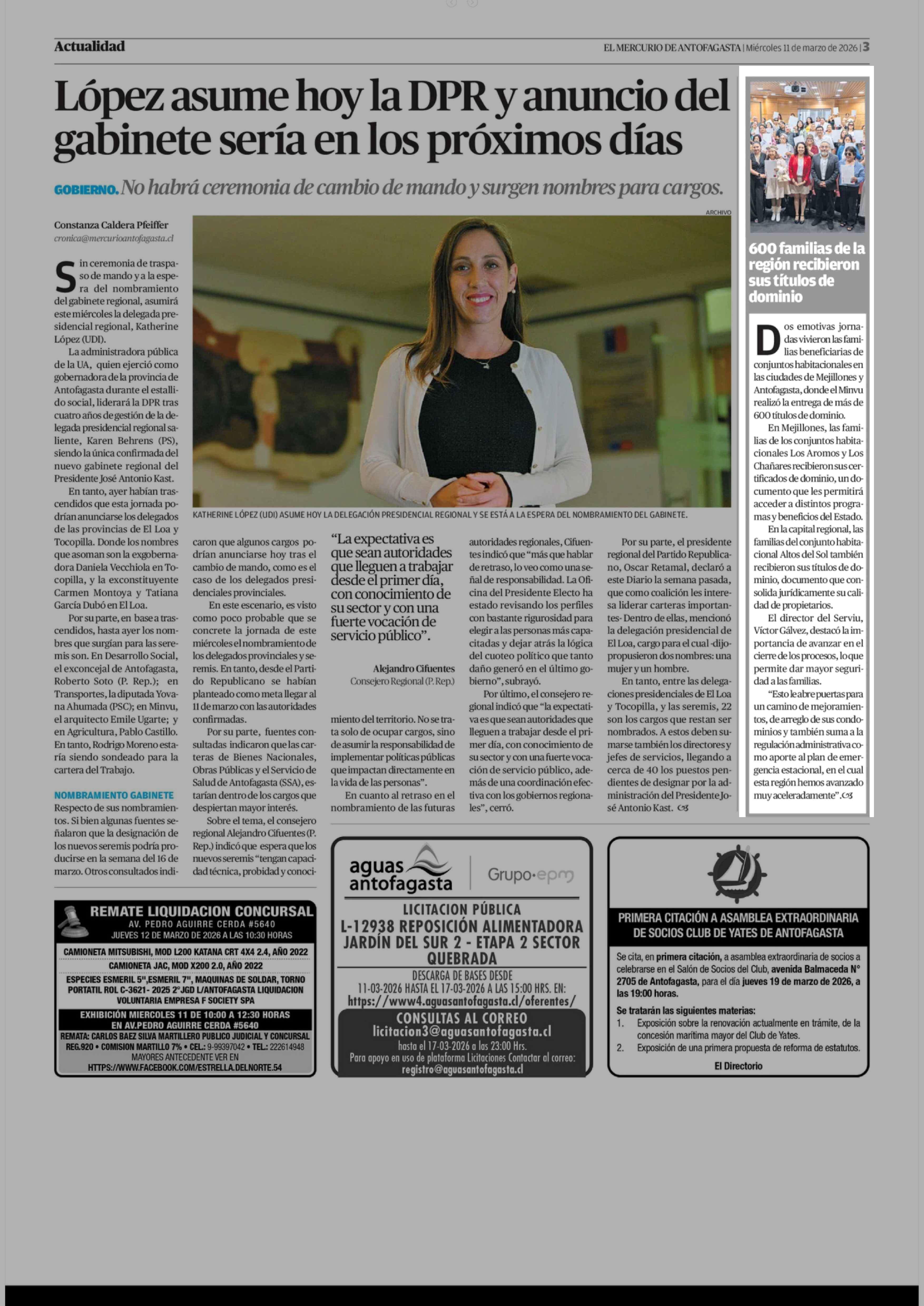 600 familias de la región recibieron sus títulos de 11-03-2026 El Mercurio de Antofagasta |