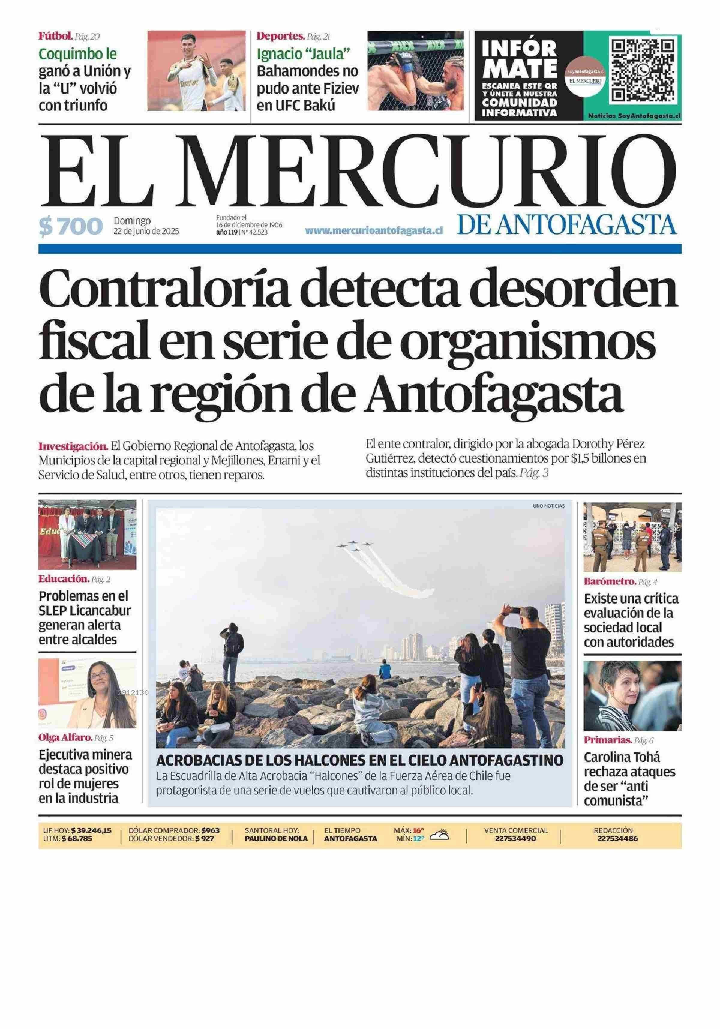 | Fecha: | 22-06-2025 | Sector: | Portada | Región: | Región de Antofagasta |