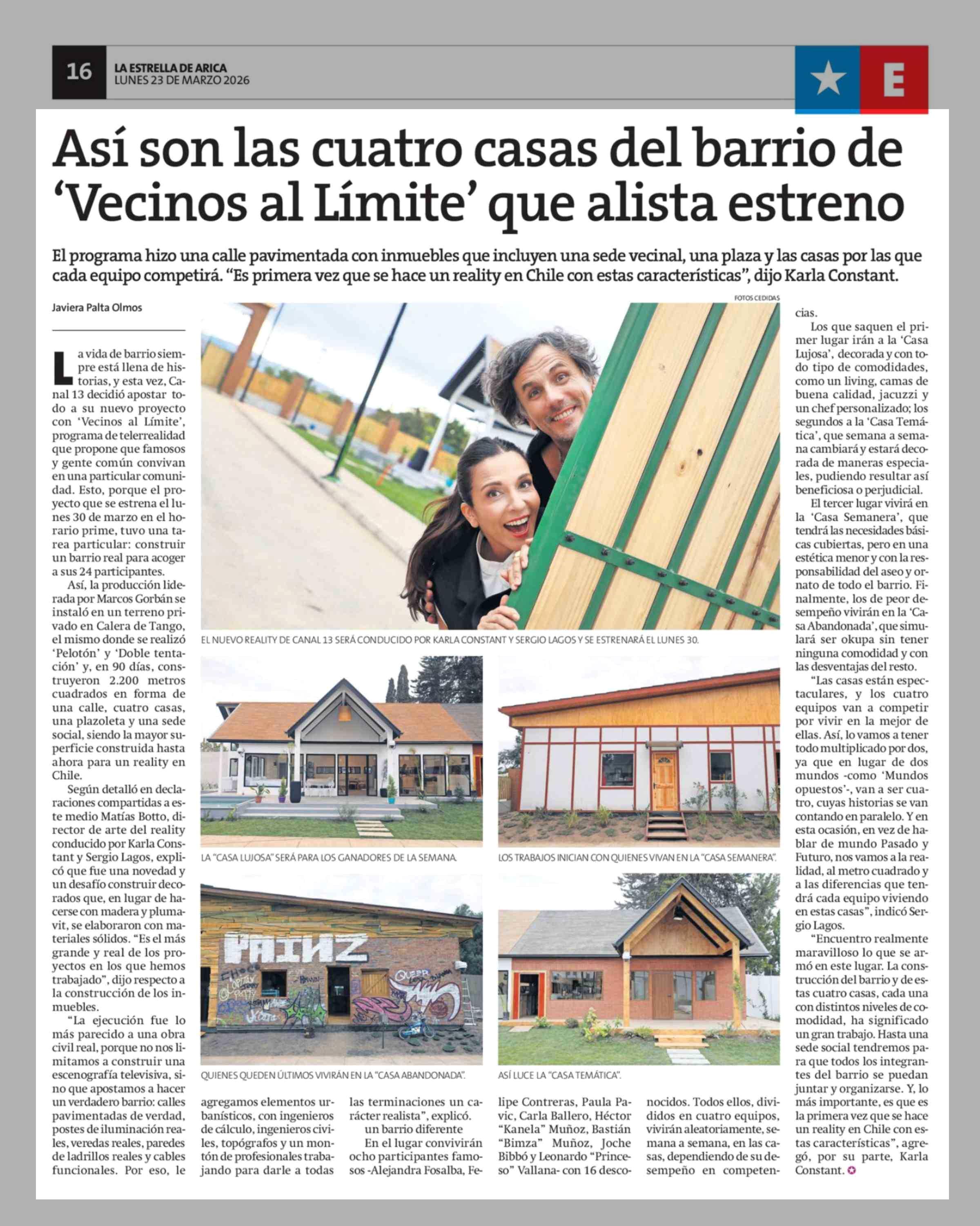 Así son las cuatro casas del barrio de 'Vecinos al Límite' que alista estreno 23-03-2026 La Estrella de Arica |