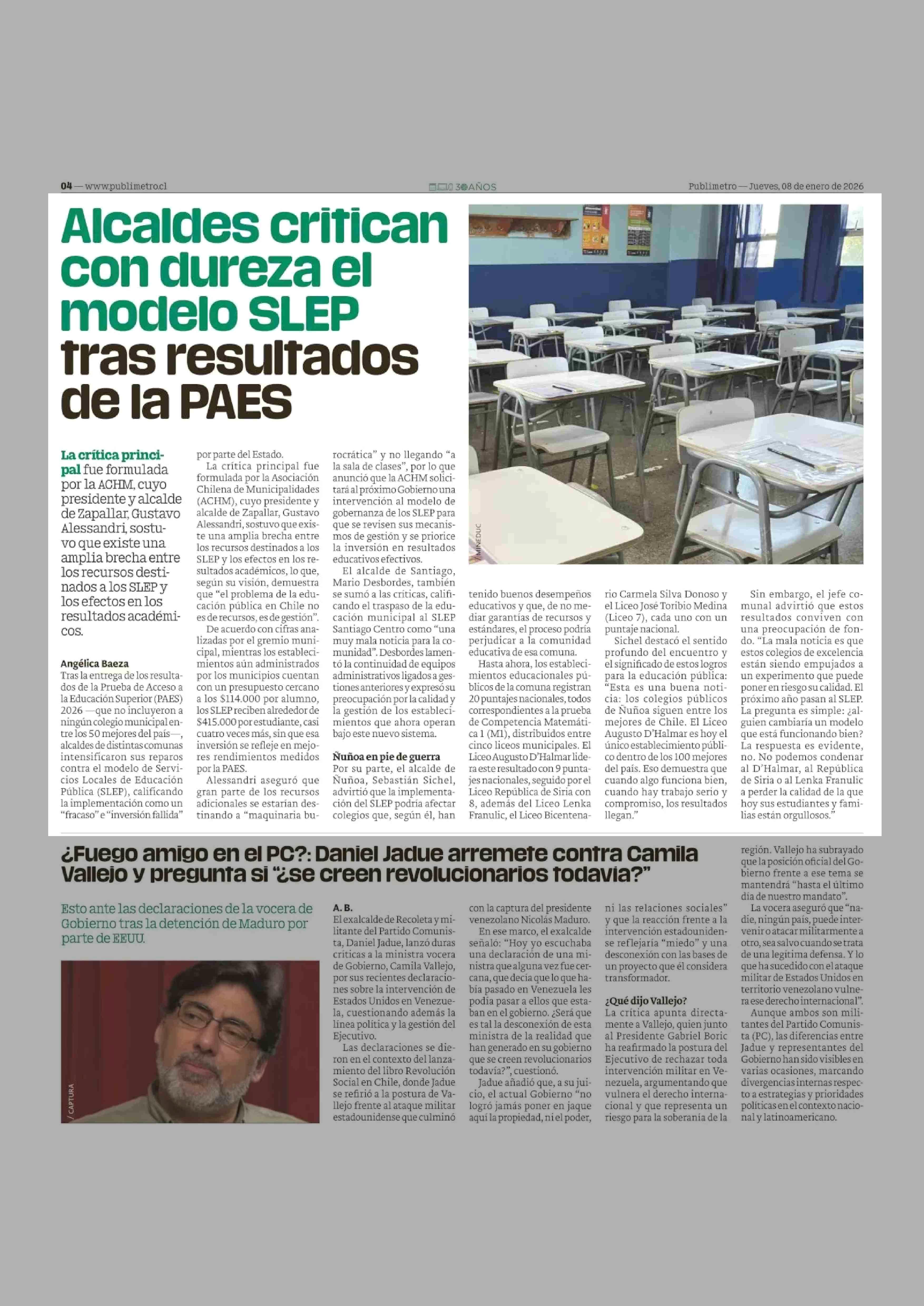 Título: Alcaldes critican con dureza el modelo SLEP tras resultados de la PAES