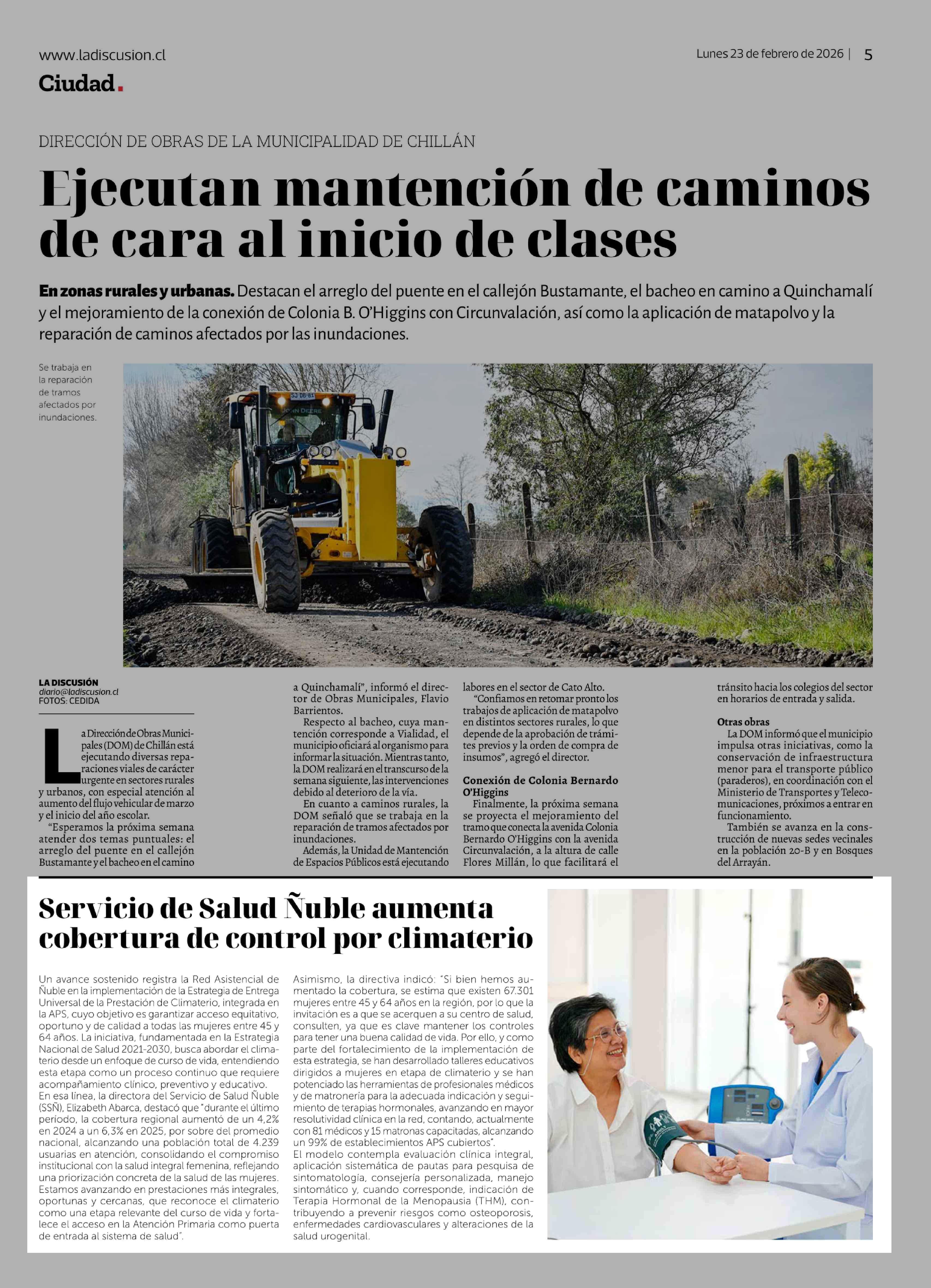 Fecha: 23-02-2026 Sector: Noticia general Región: Región del Ñuble