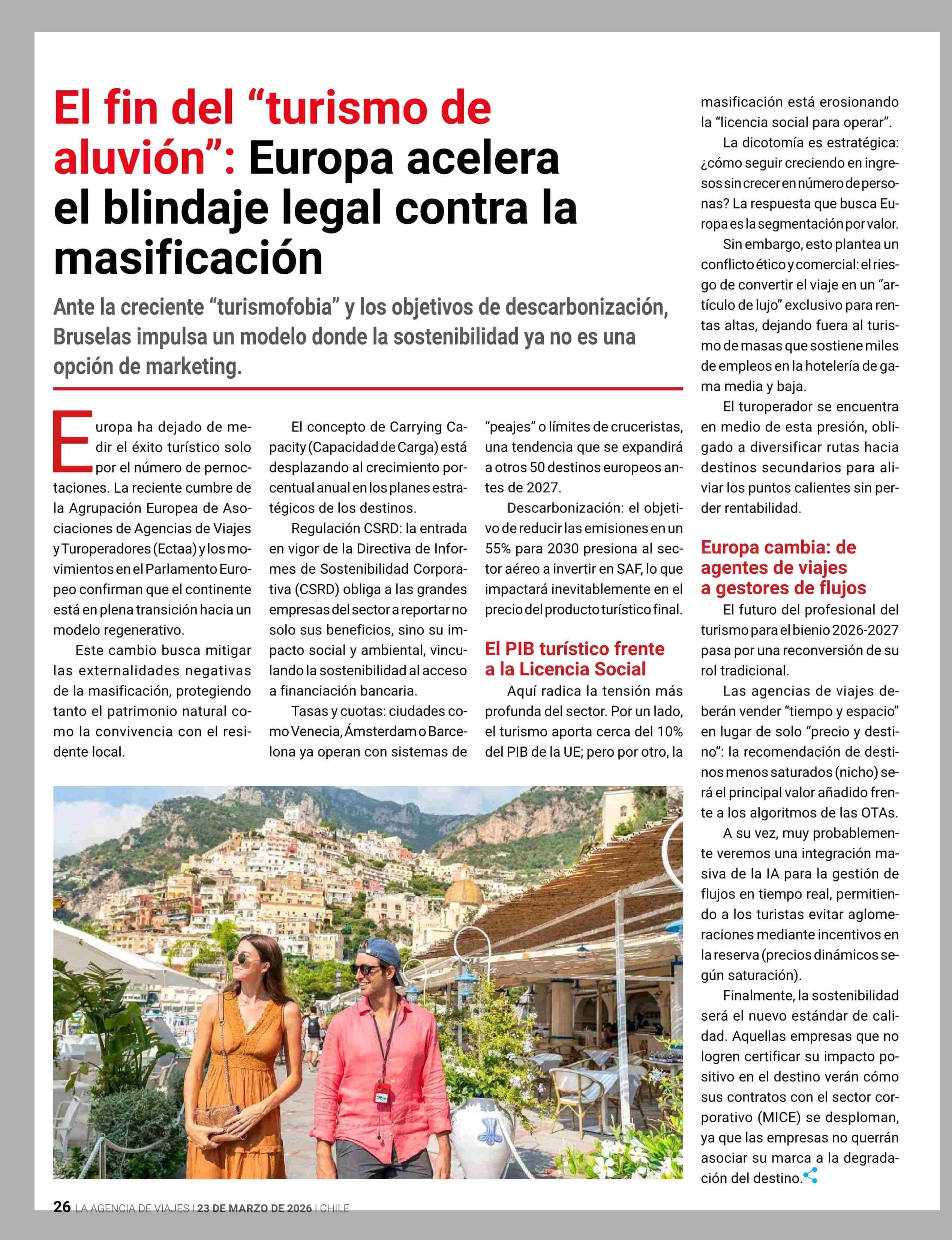 El fin del “turismo de aluvión”: Europa acelera el blindaje legal contra la masificación 27-03-2026 Revista La Agencia de Viajes |