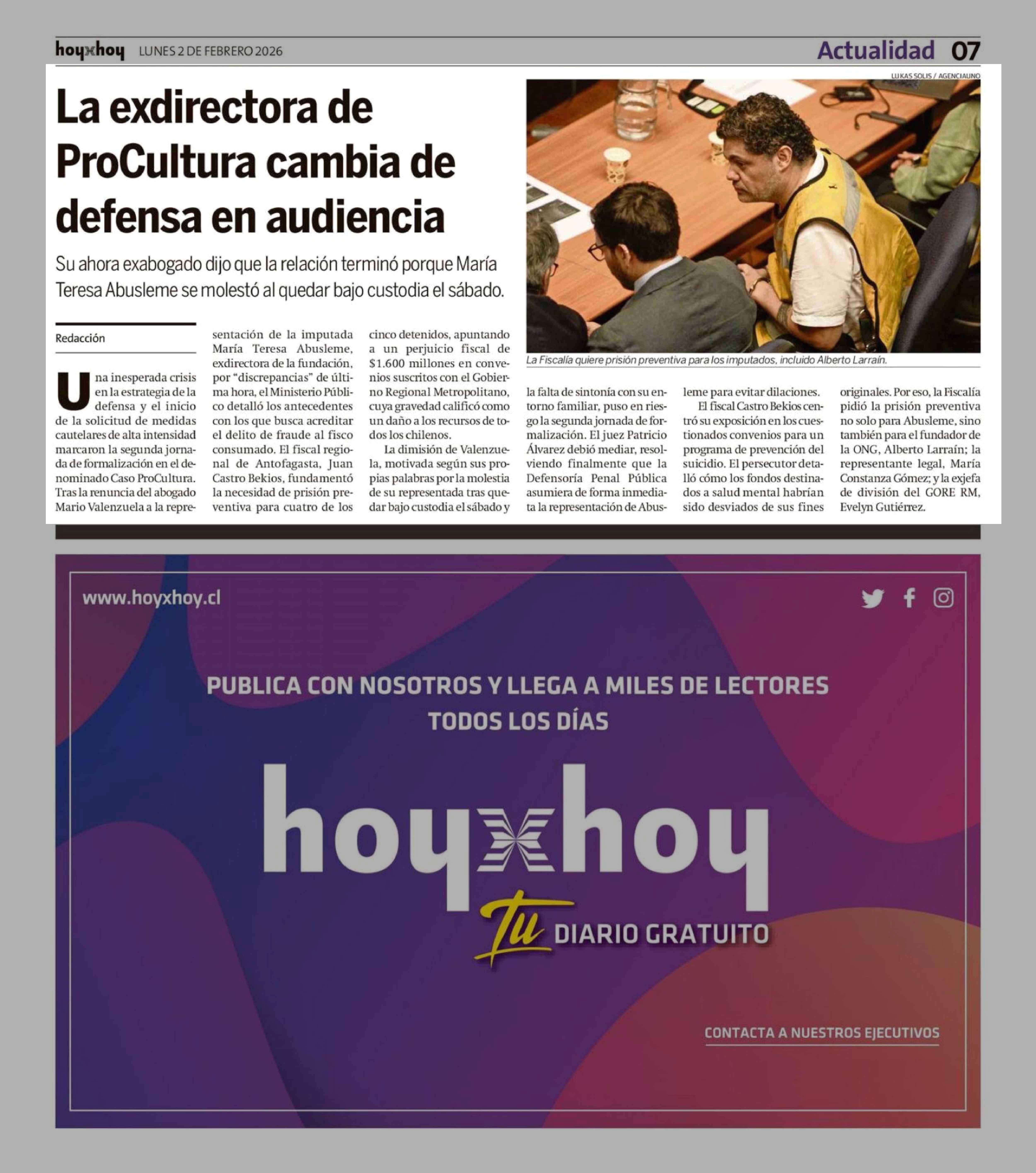 La exdirectora de ProCultura cambia de defensa en audiencia 02-02-2026 Hoy x Hoy Concepción |