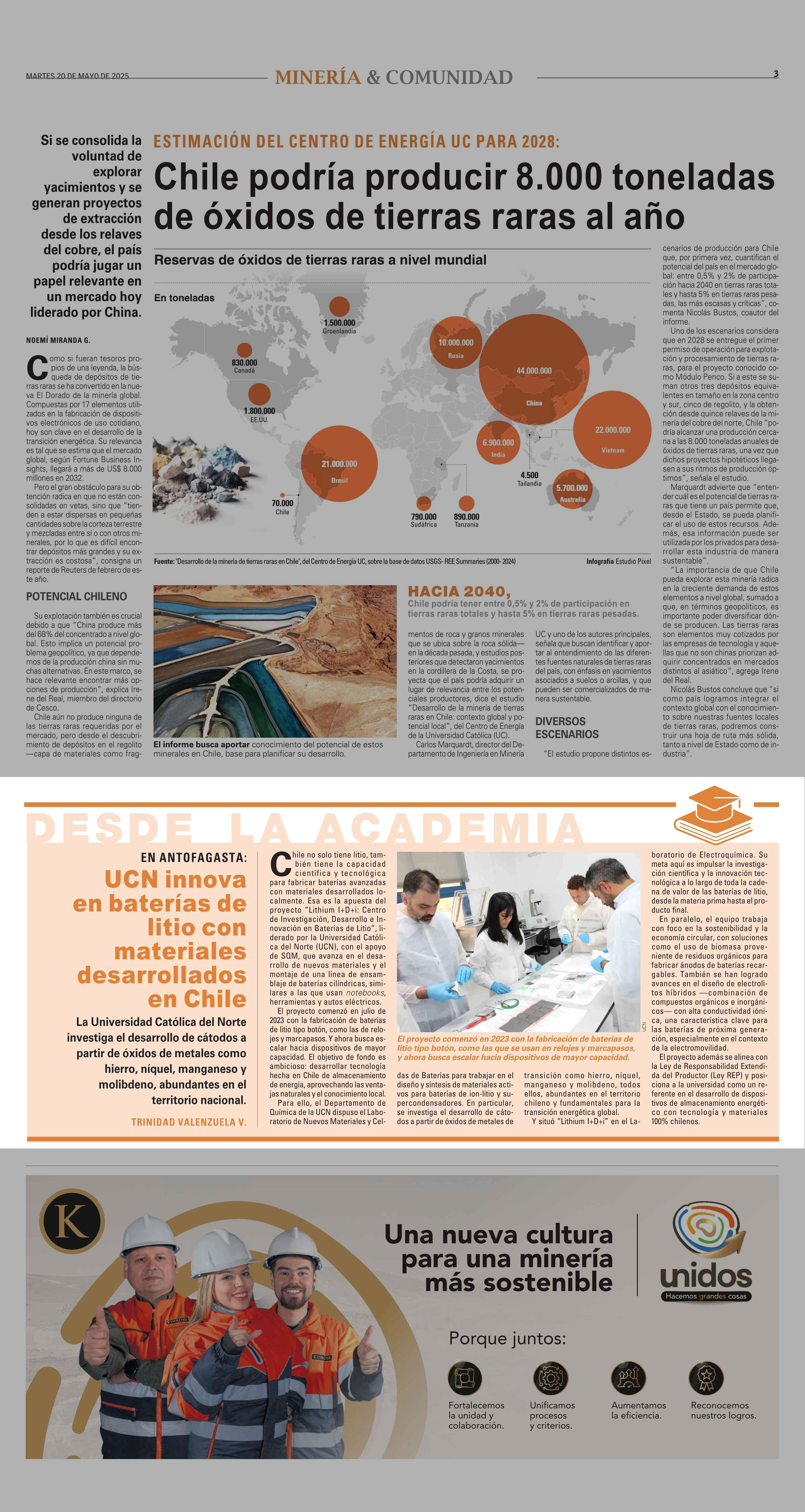UCN innova en baterías de litio con materiales desarrollados en Chile 20-05-2025 El Mercurio |