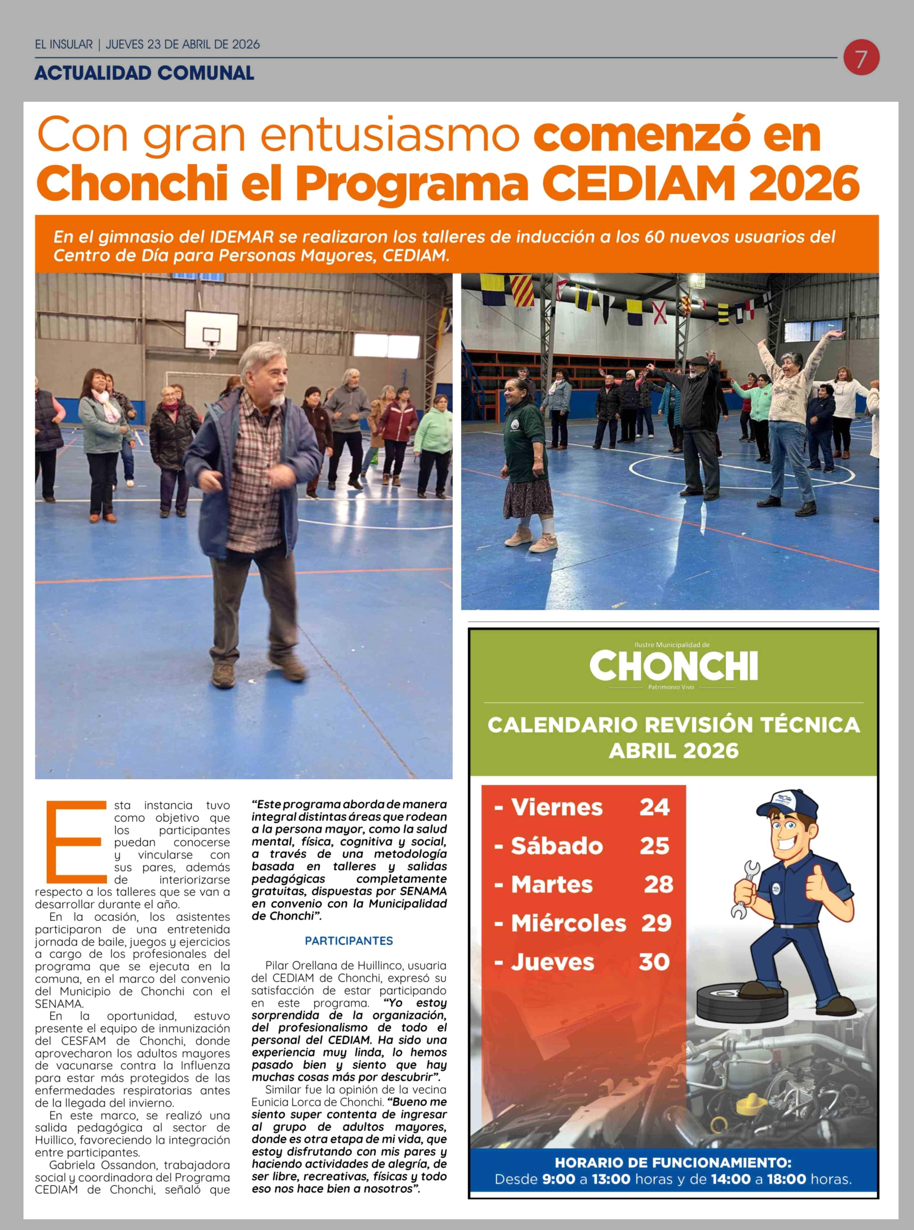 Con gran entusiasmo comenzó en Chonchi el Programa CEDIAM 2026 23-04-2026 El Insular |