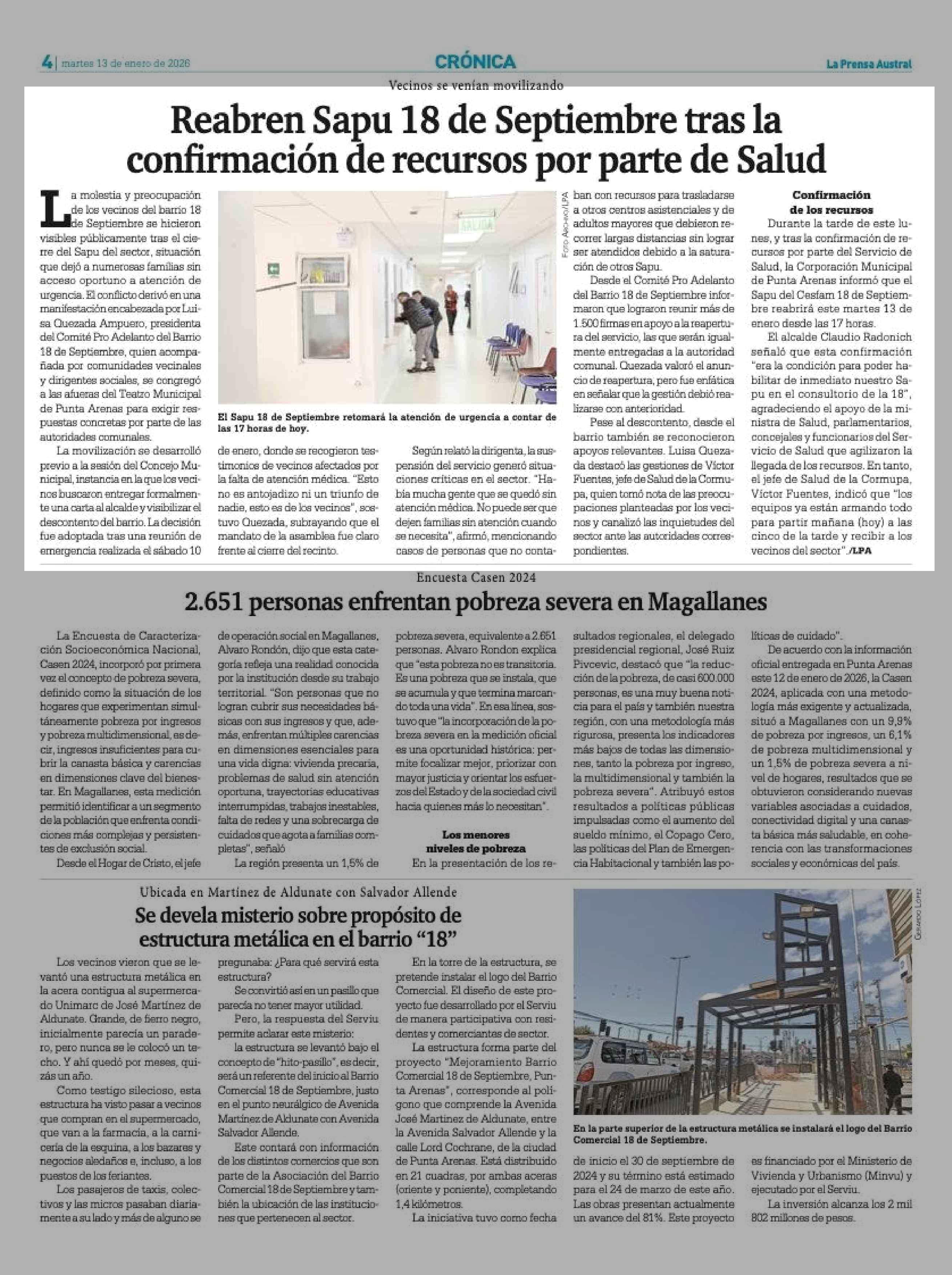 Fecha: 13-01-2026 Sector: Noticia general Región: Región de Magallanes y de la Antártica Chilena