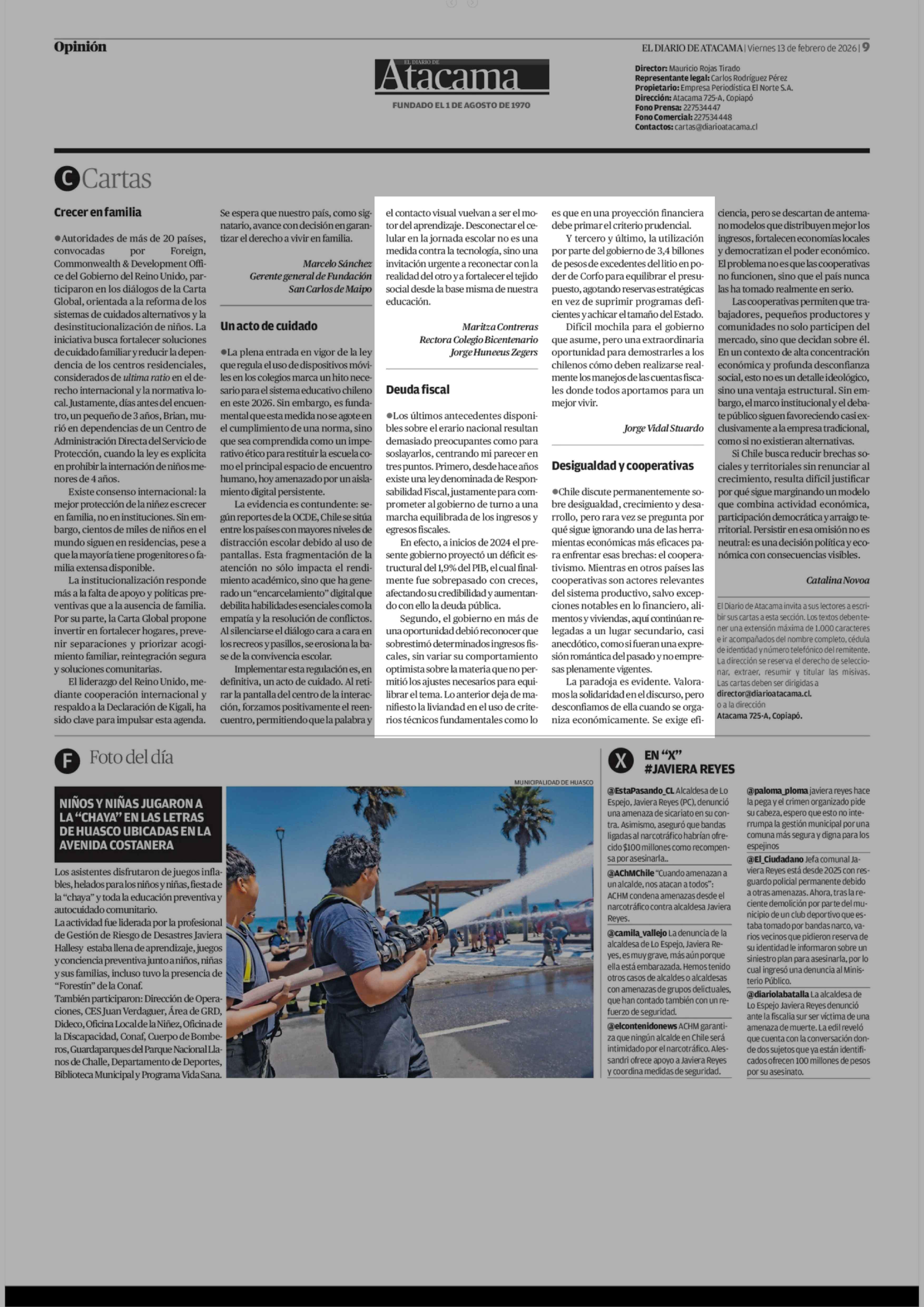 Fecha: 13-02-2026 Sector: Cartas Región: Región de Atacama