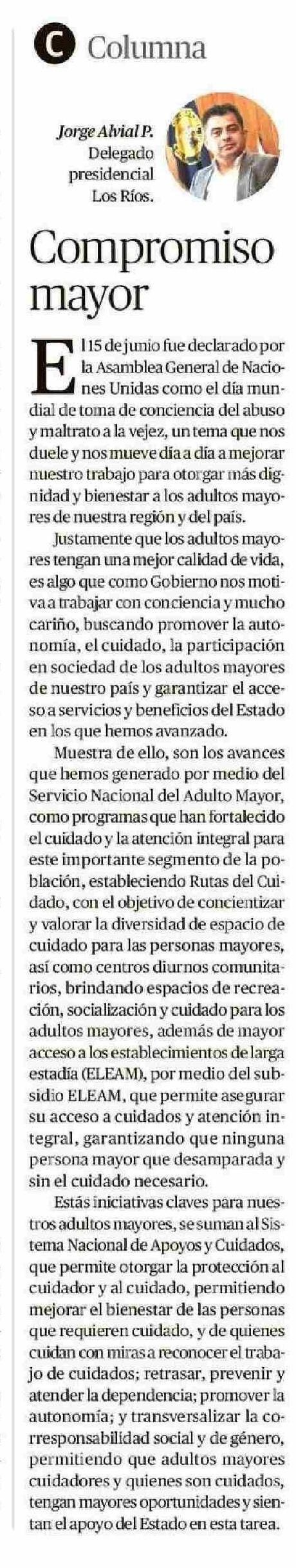Columnas de Opinión: Compromiso mayor 21-06-2025 Diario Austral Región de Los Ríos |