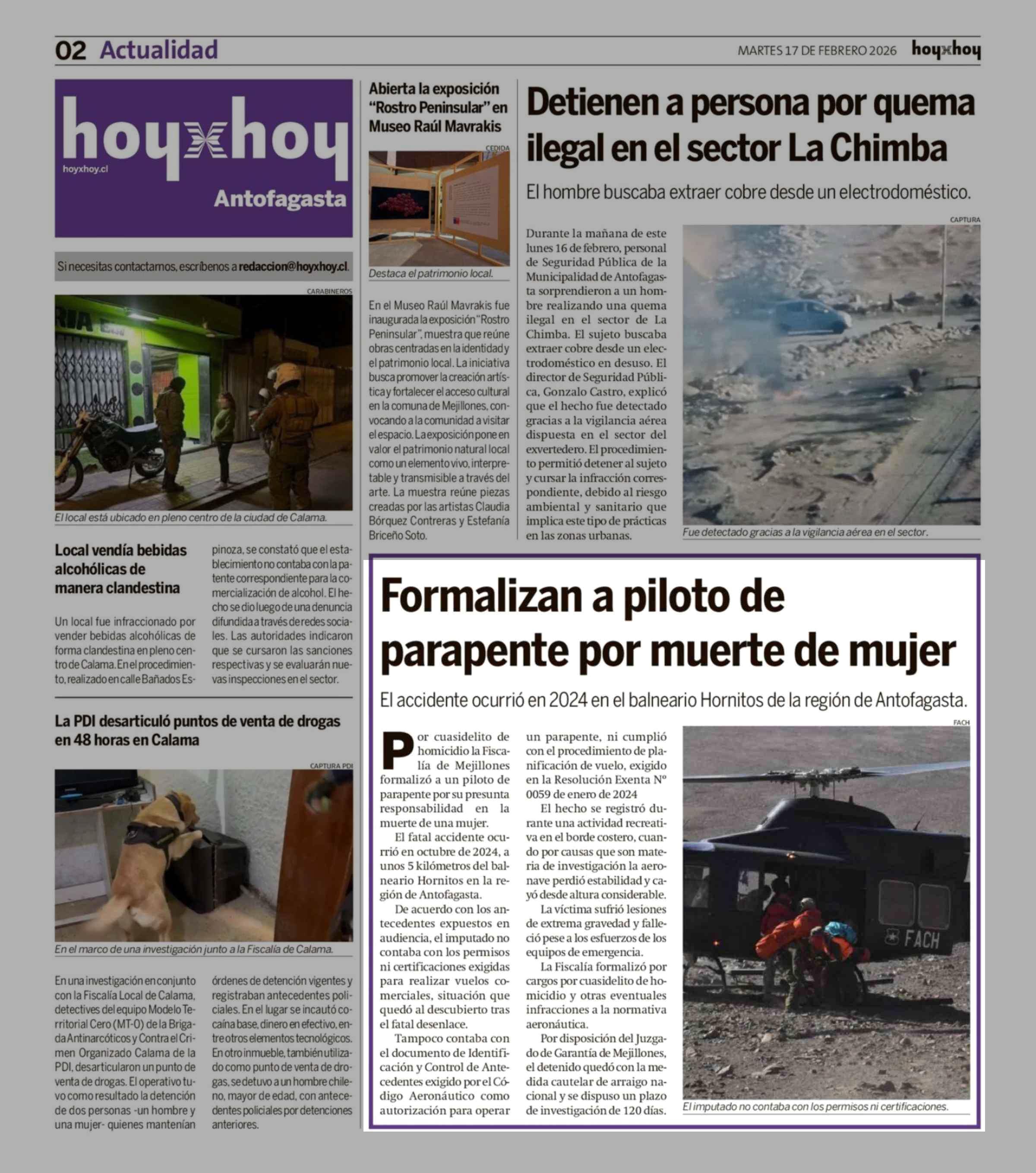 Formalizan a piloto de parapente por muerte de mujer 17-02-2026 Hoy x Hoy Antofagasta |
