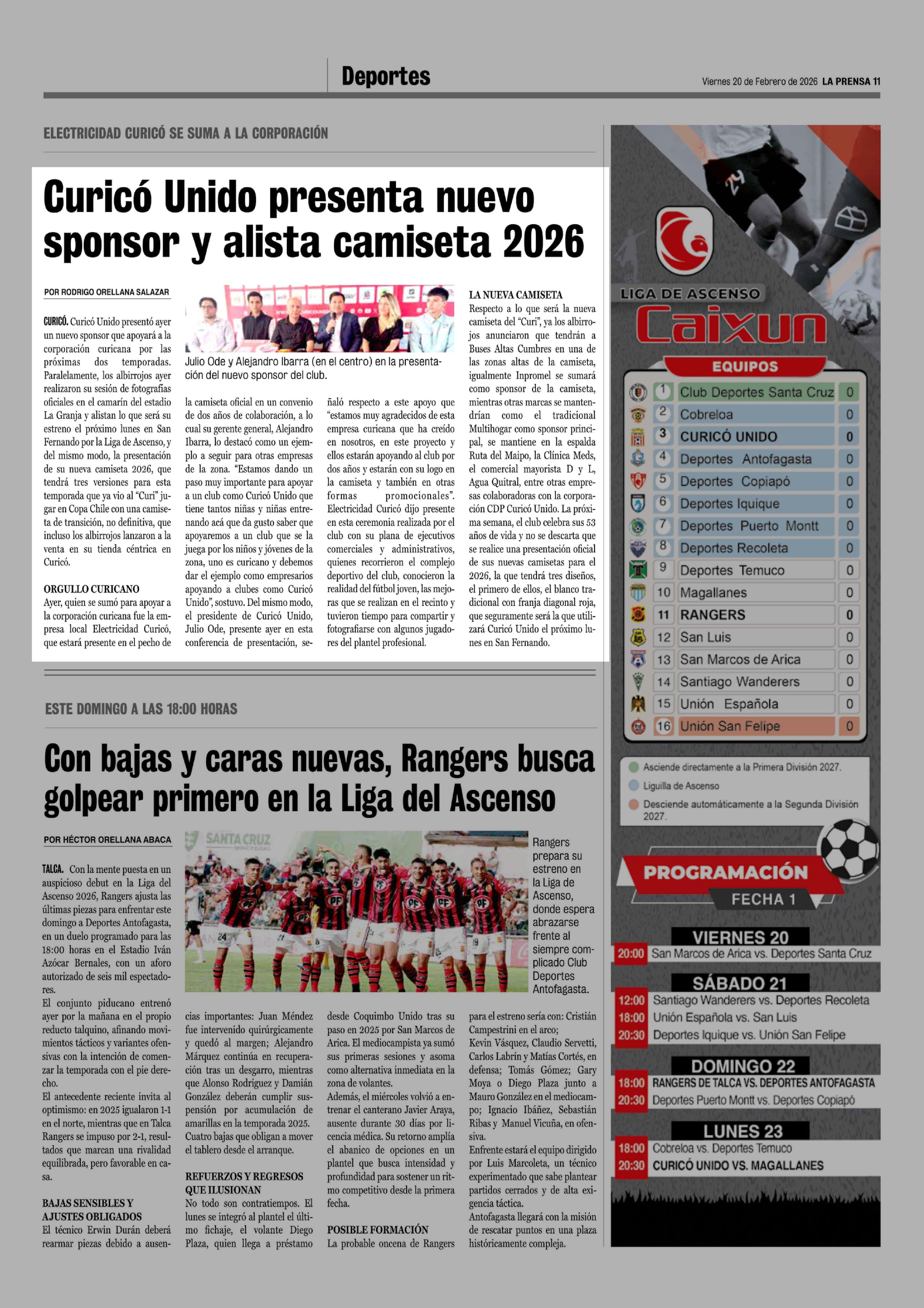 Curicó Unido presenta nuevo sponsor y alista camiseta 2026 20-02-2026 La Prensa de Curicó |