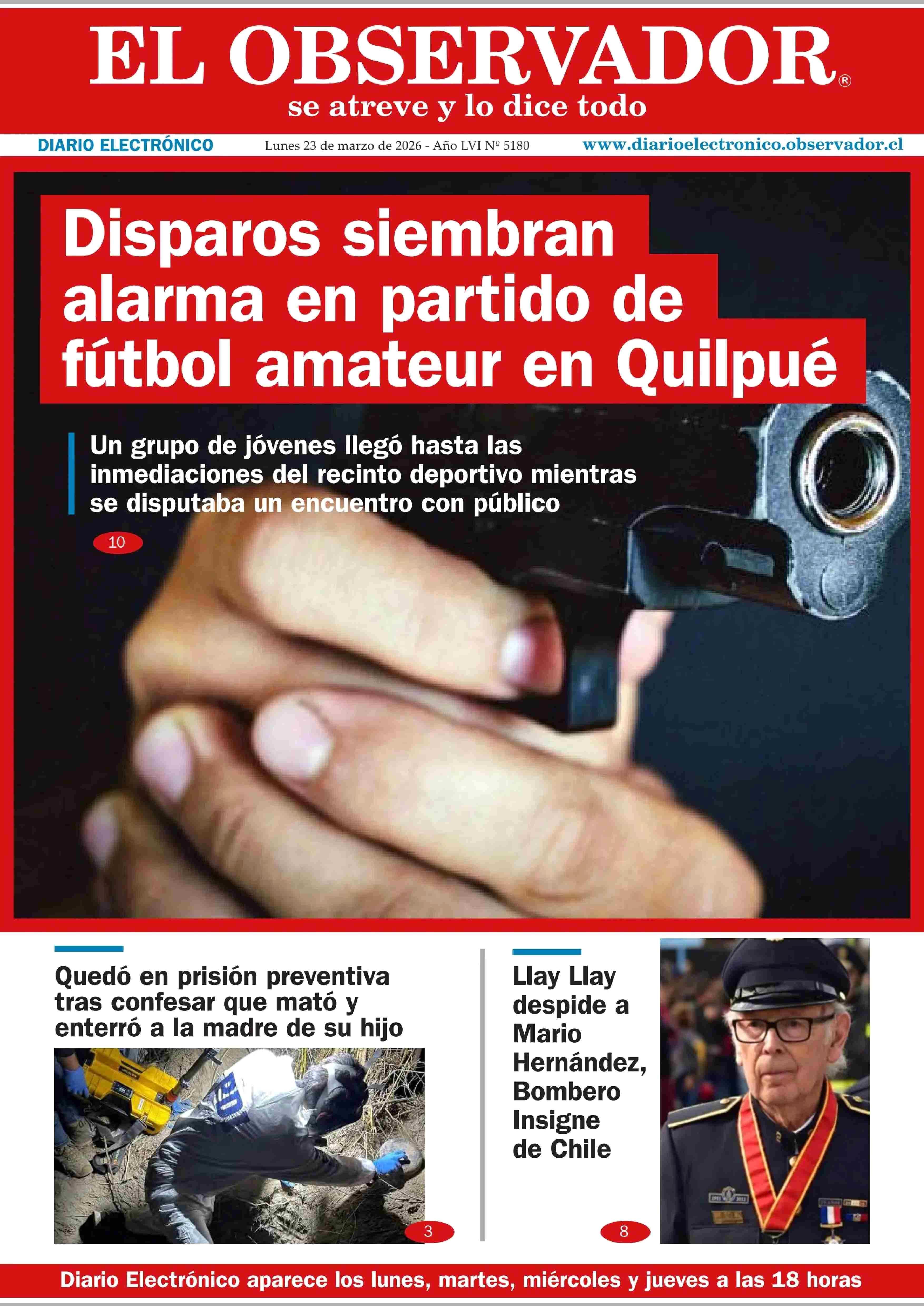 PORTADA EL OBSERVADOR VESPERTINO - CHILE 23-03-2026 El Observador Vespertino |