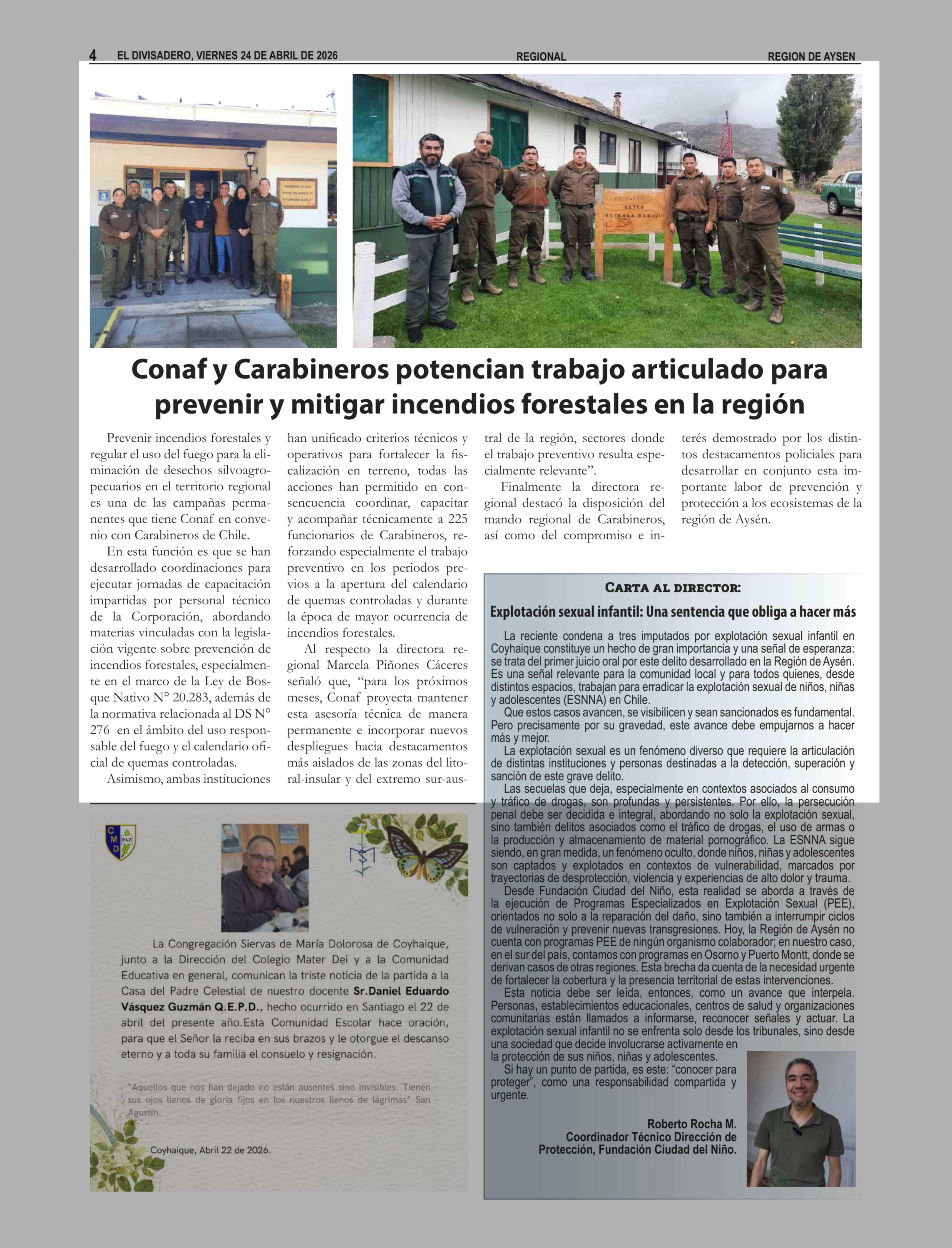 Fecha: 24-04-2026 Sector: Noticia general Región: Región Aysén del General Carlos Ibáñez del Campo