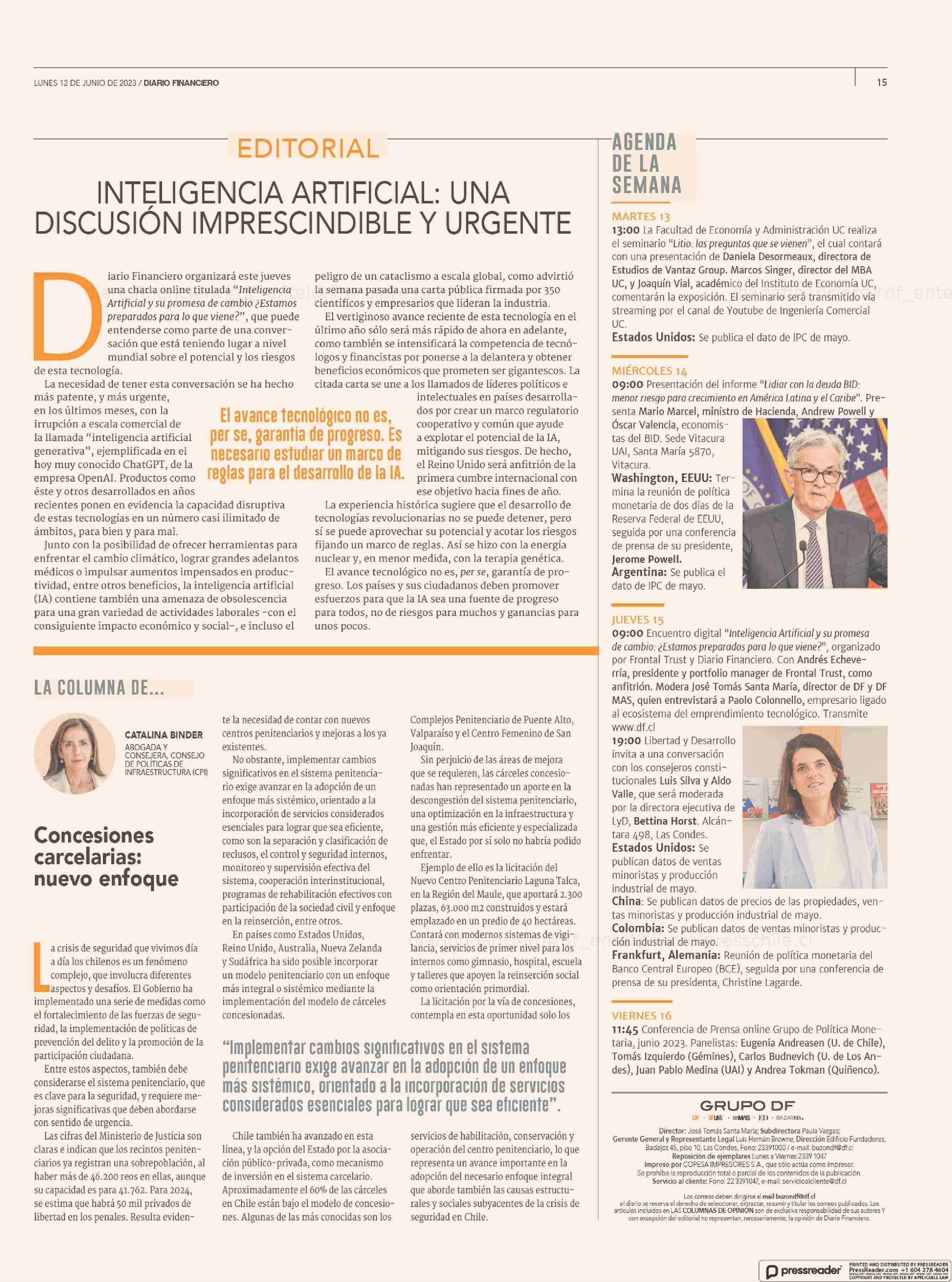 AGENDA DE LA SEMANA 12-06-2023 Diario Financiero |