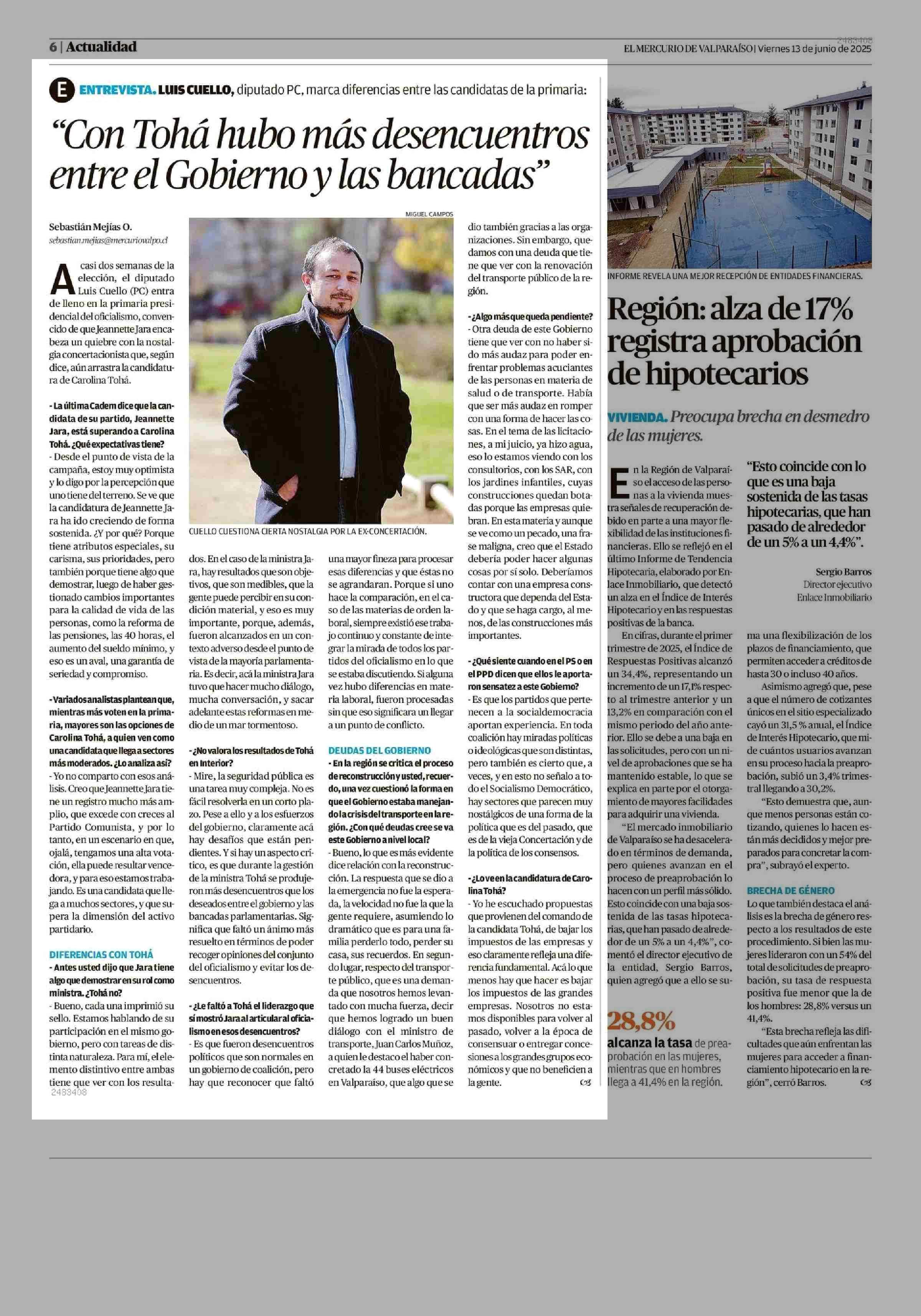 "Con Tohá hubo más desencuentros entre el Gobierno y las bancadas" 13-06-2025 El Mercurio de Valparaíso |
