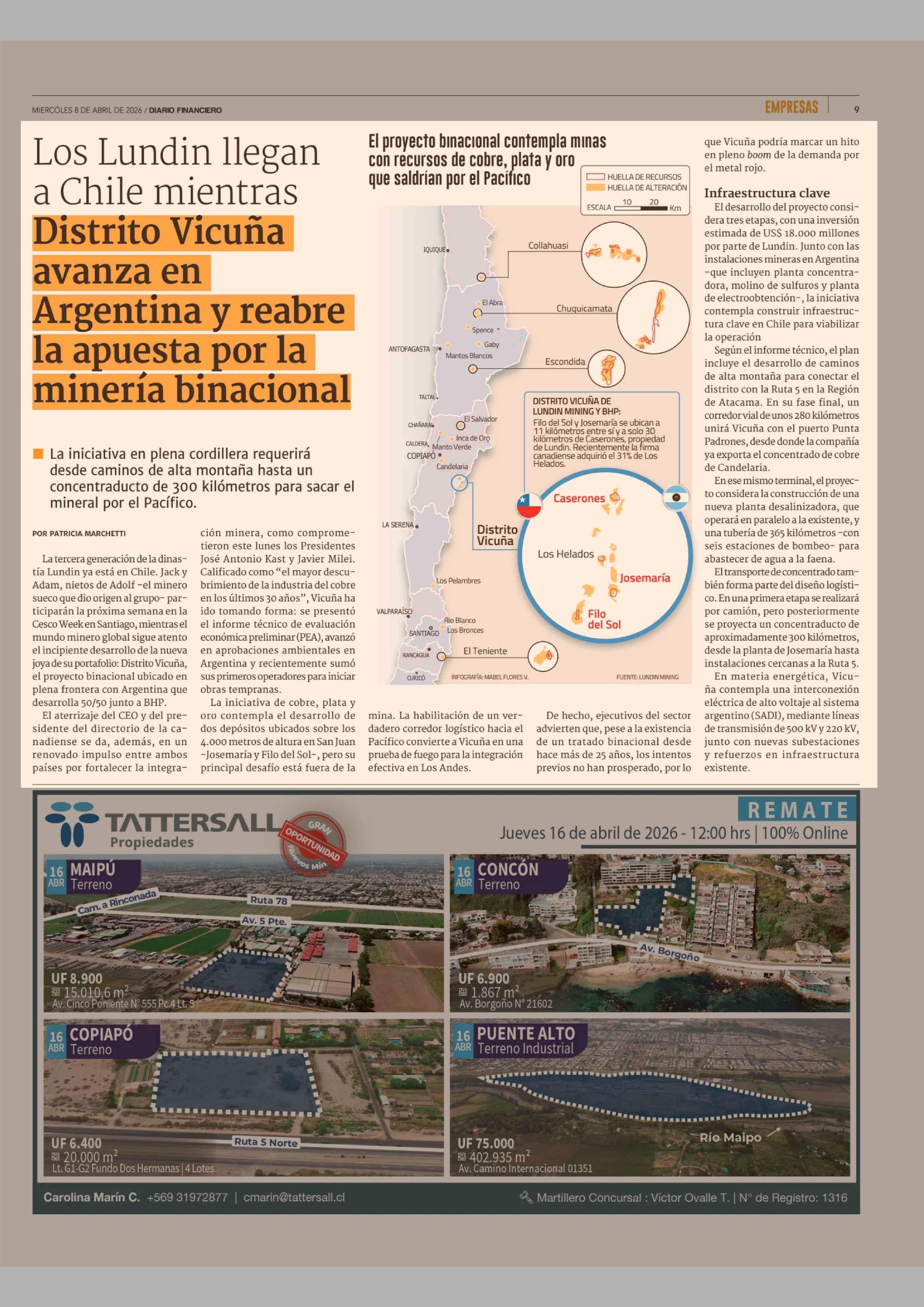 Título: Los Lundin llegan a Chile mientras Distrito Vicuña avanza en Argentina y reabre la apuesta por la minería binacional