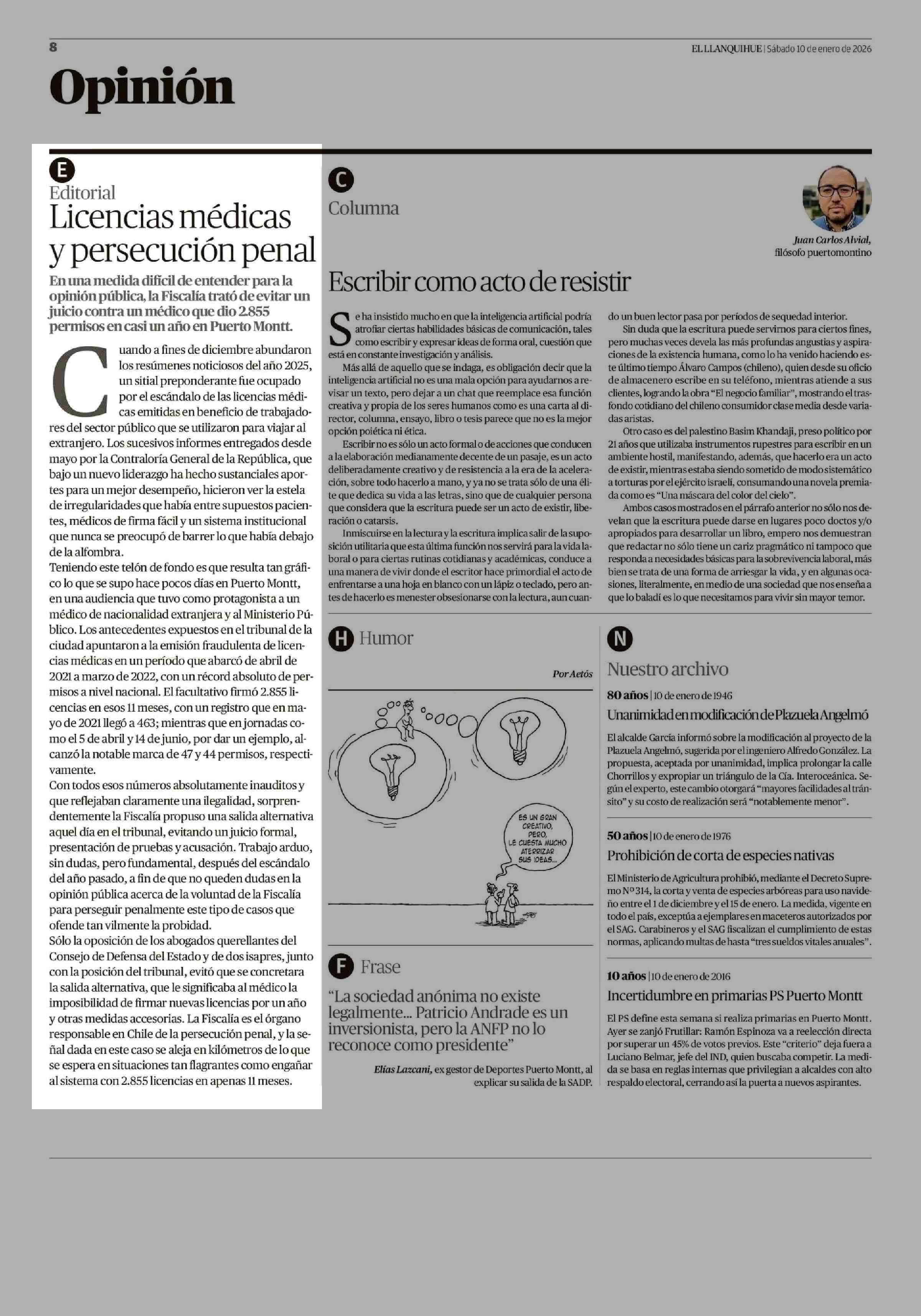Fecha: 10-01-2026 Sector: Editorial Región: Región de Los Lagos