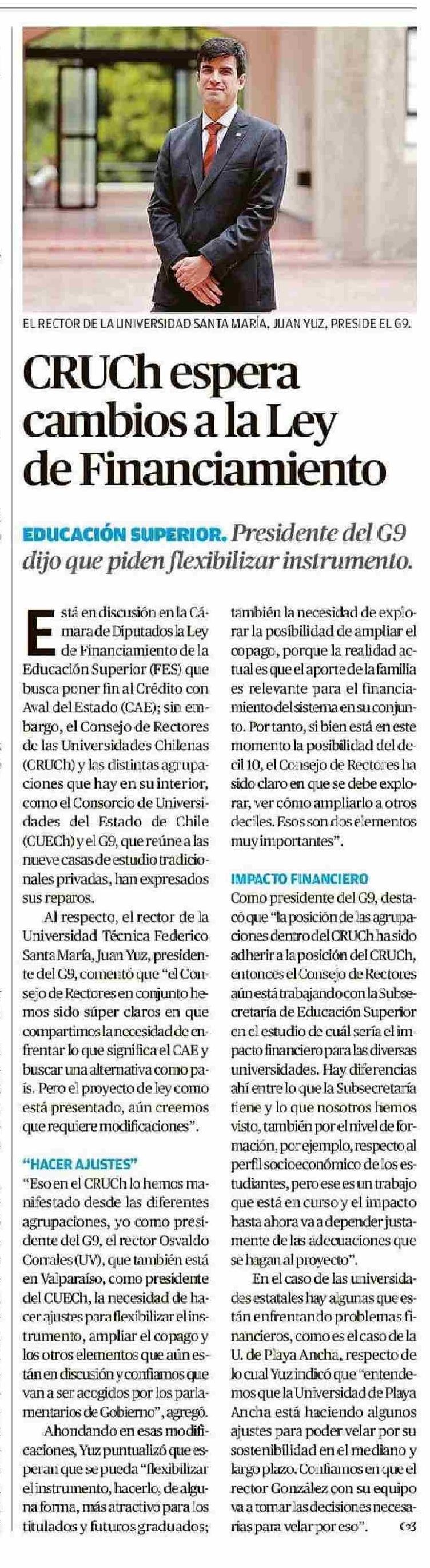 | Título: | CRUCh espera cambios a la Ley de Financiamiento |