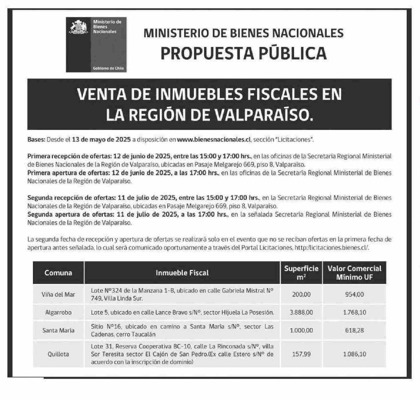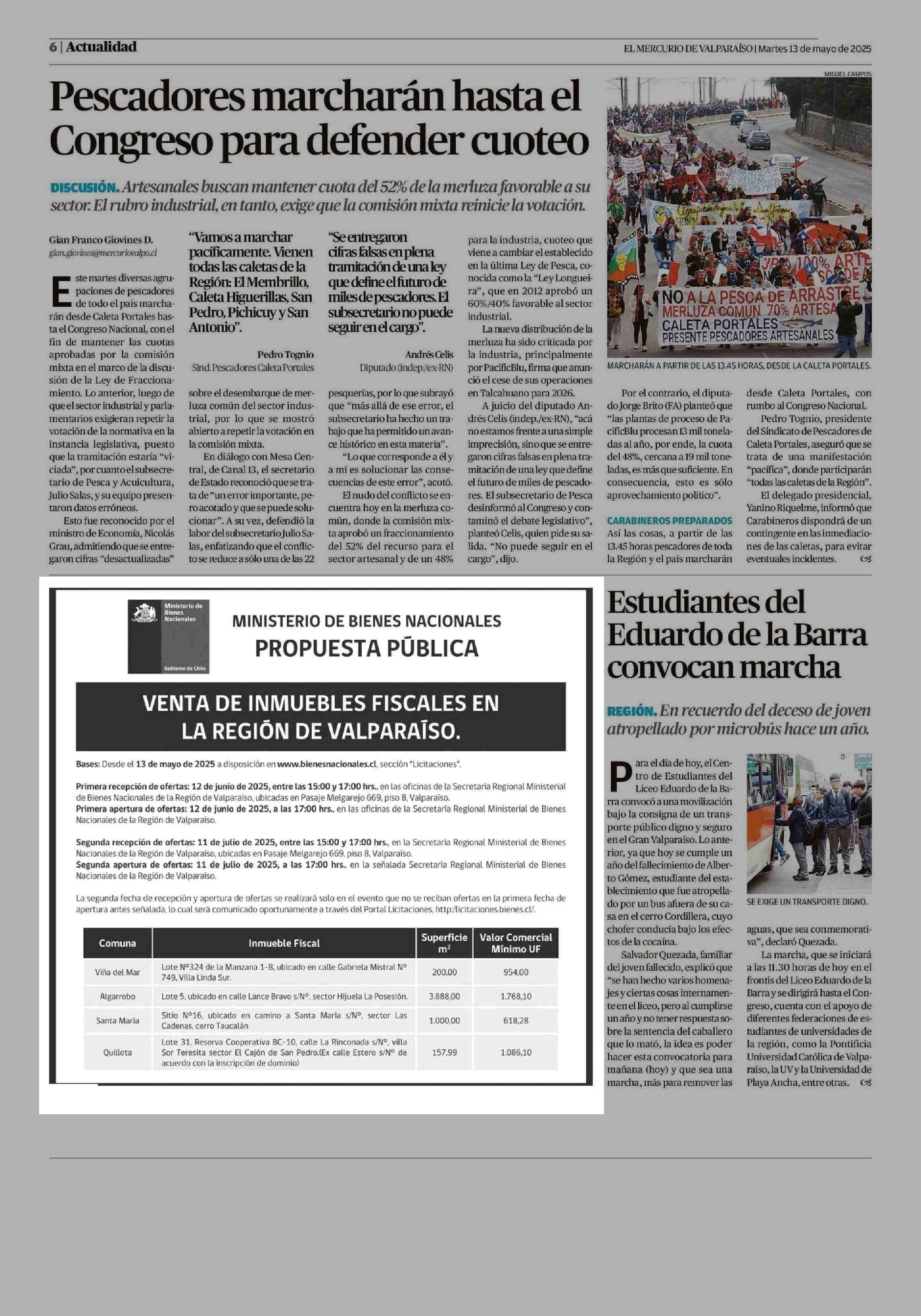 AVISO LICITACIONES: PROPUESTA PÚBLICA 13-05-2025 El Mercurio de Valparaíso |