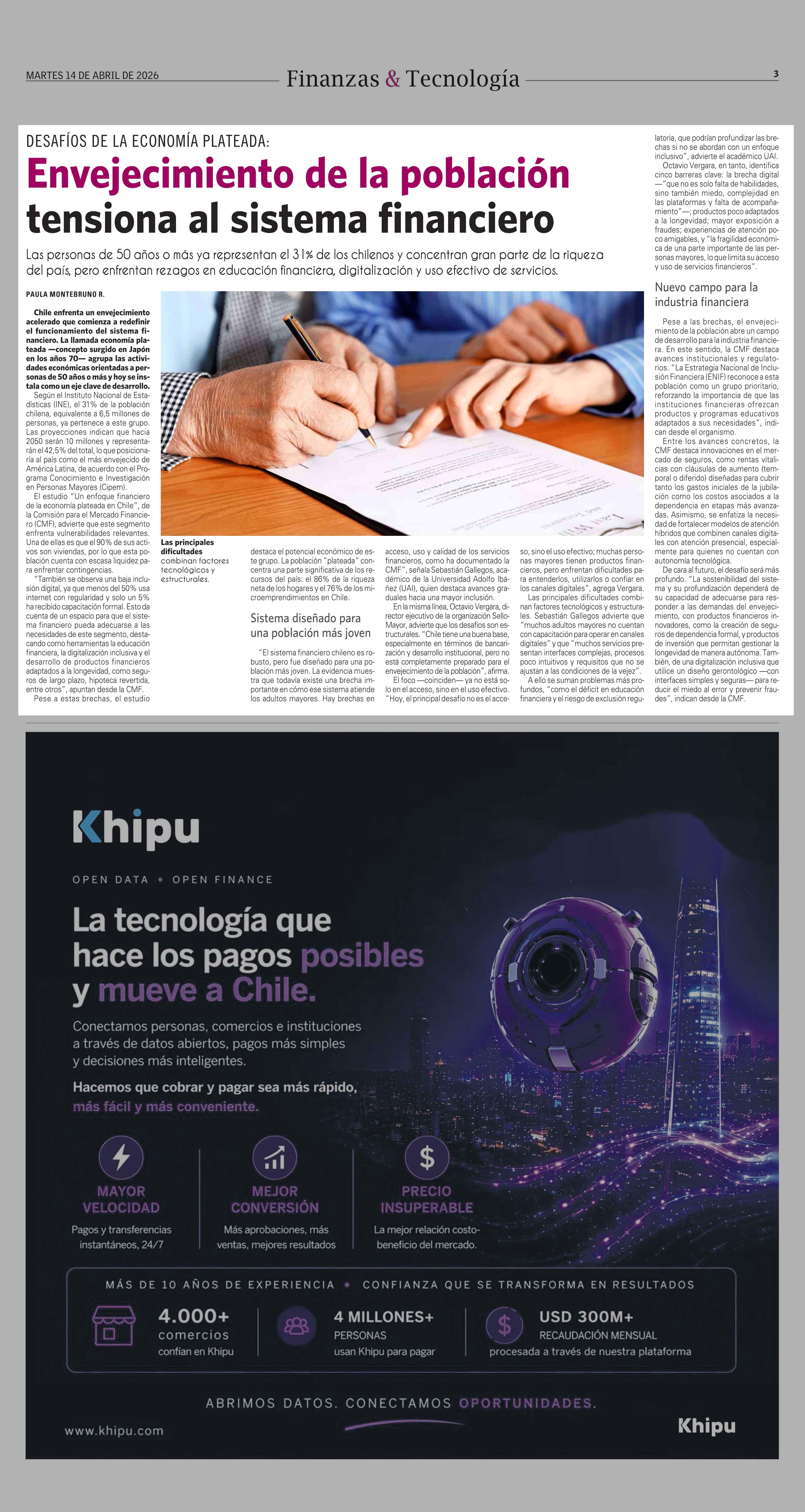 Título: Envejecimiento de la población tensiona al sistema financiero