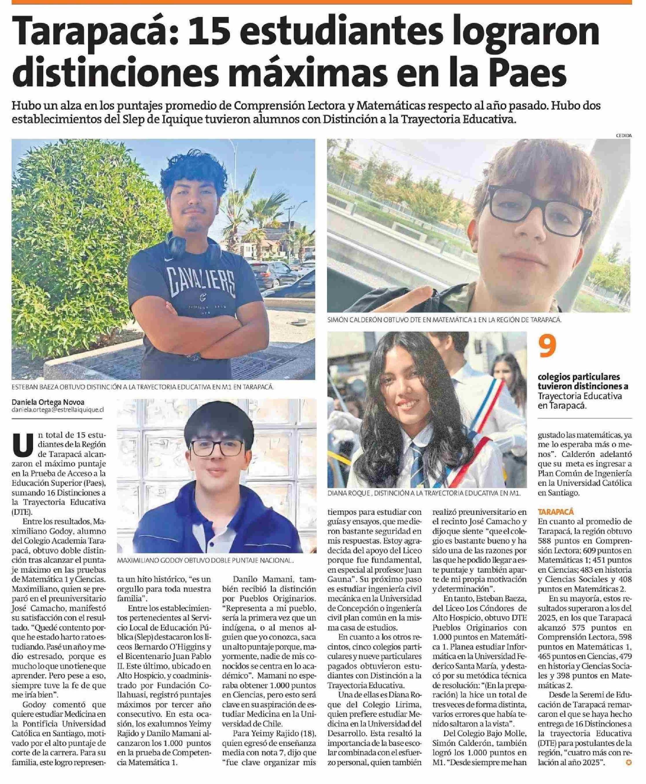 Título: Tarapacá: 15 estudiantes lograron distinciones máximas en la Paes