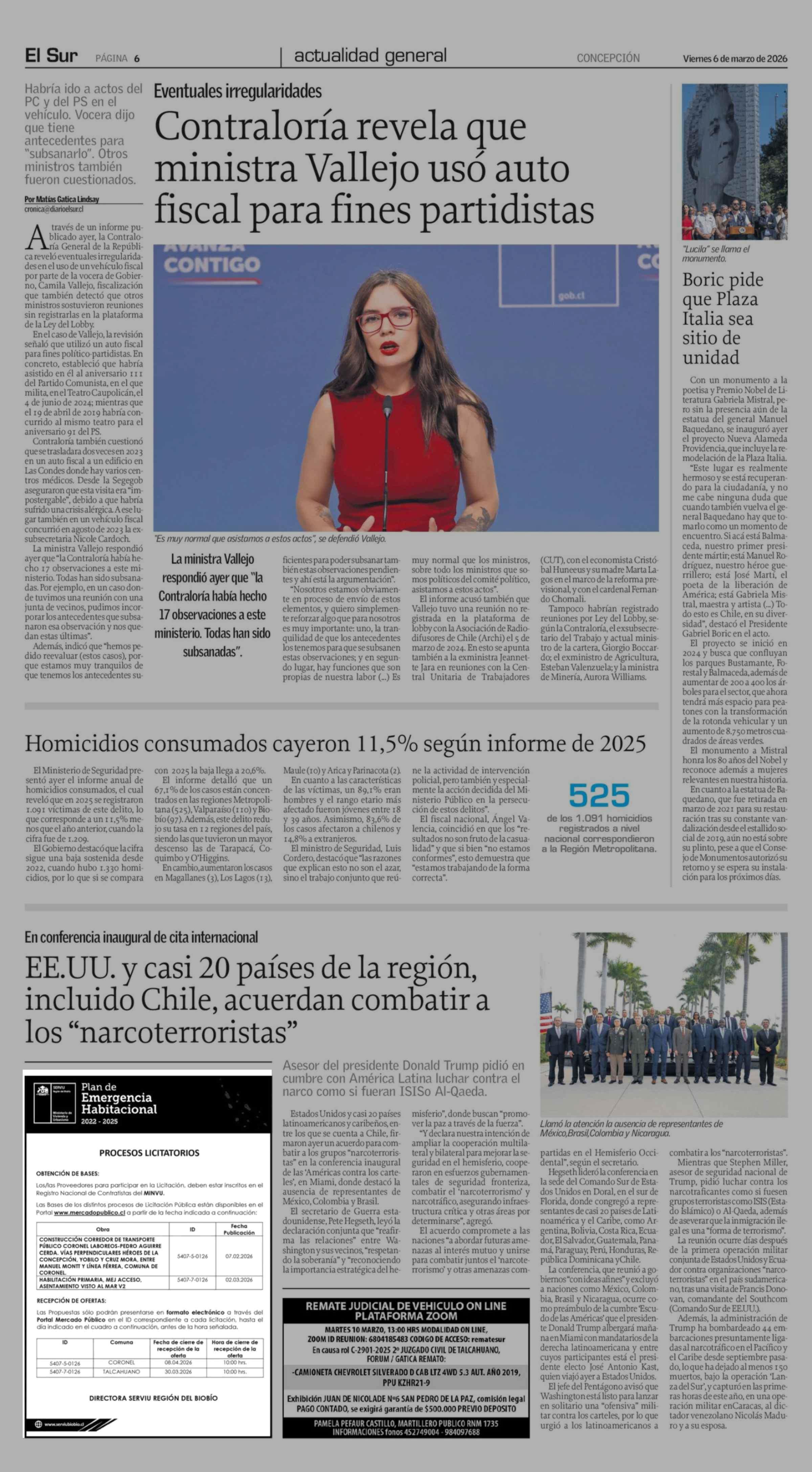 Aviso Licitaciones: PROCESOS LICITATORIOS 06-03-2026 El Sur |