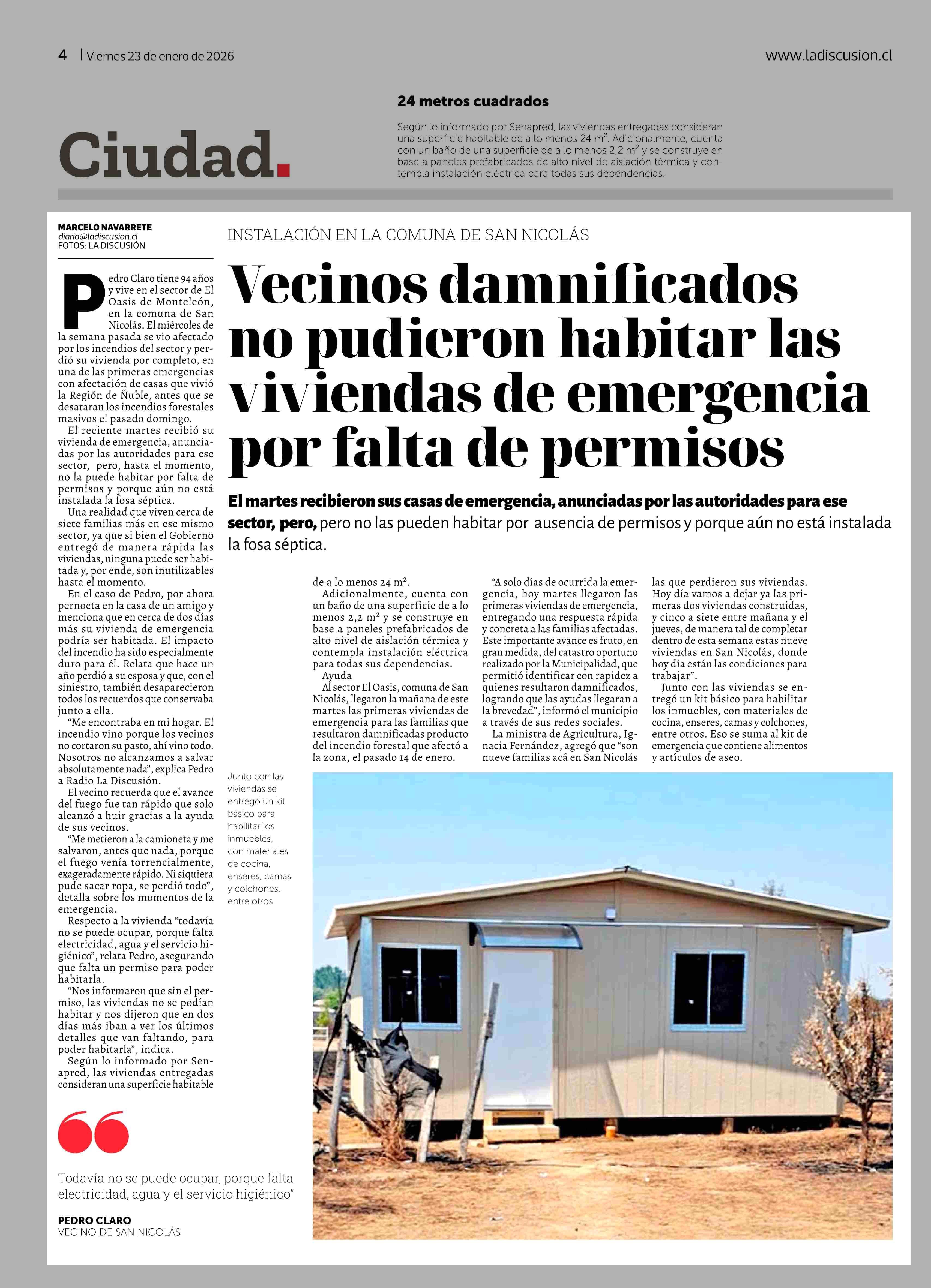 Título: Vecinos damnificados no pudieron habitar las viviendas de emergencia por falta de permisos