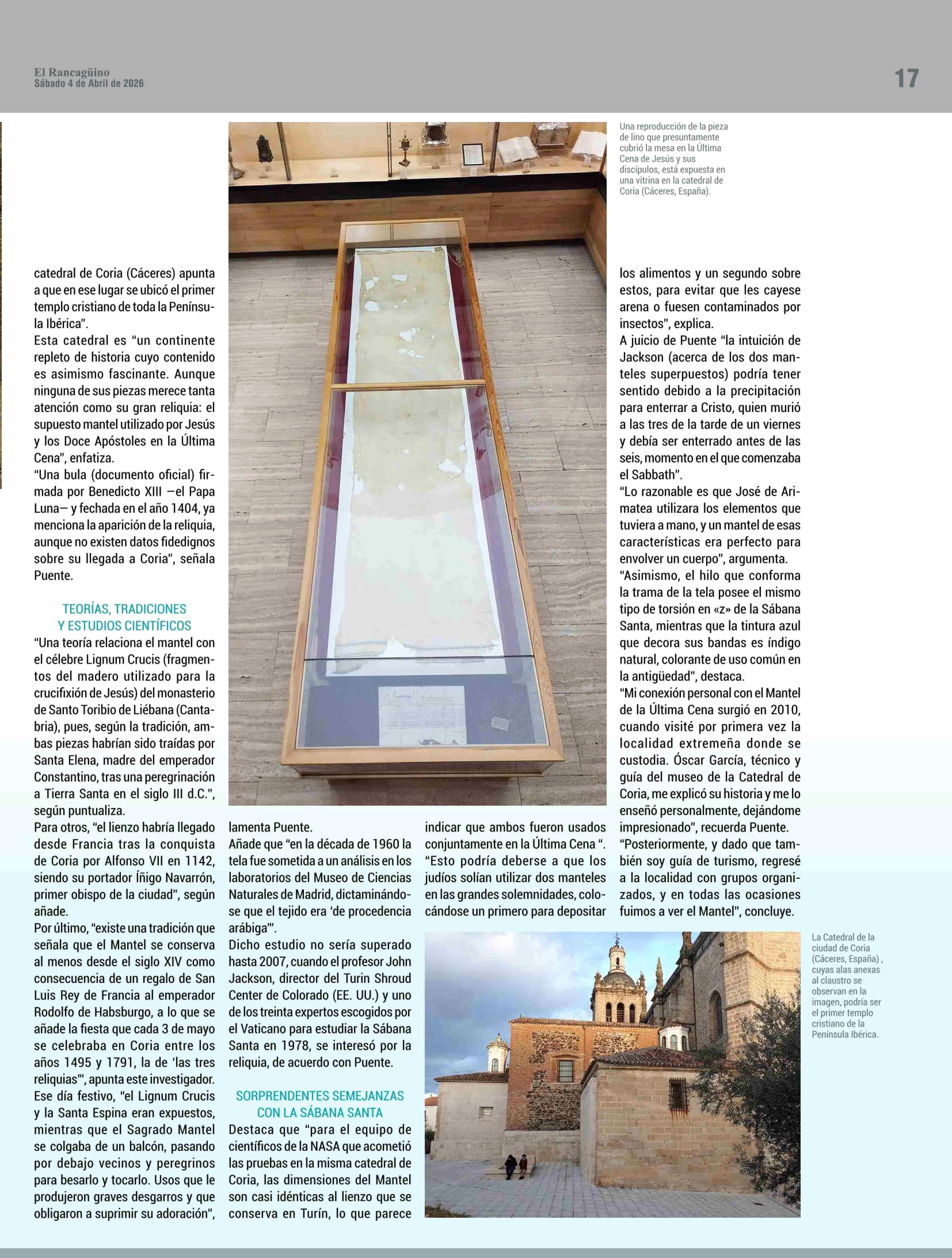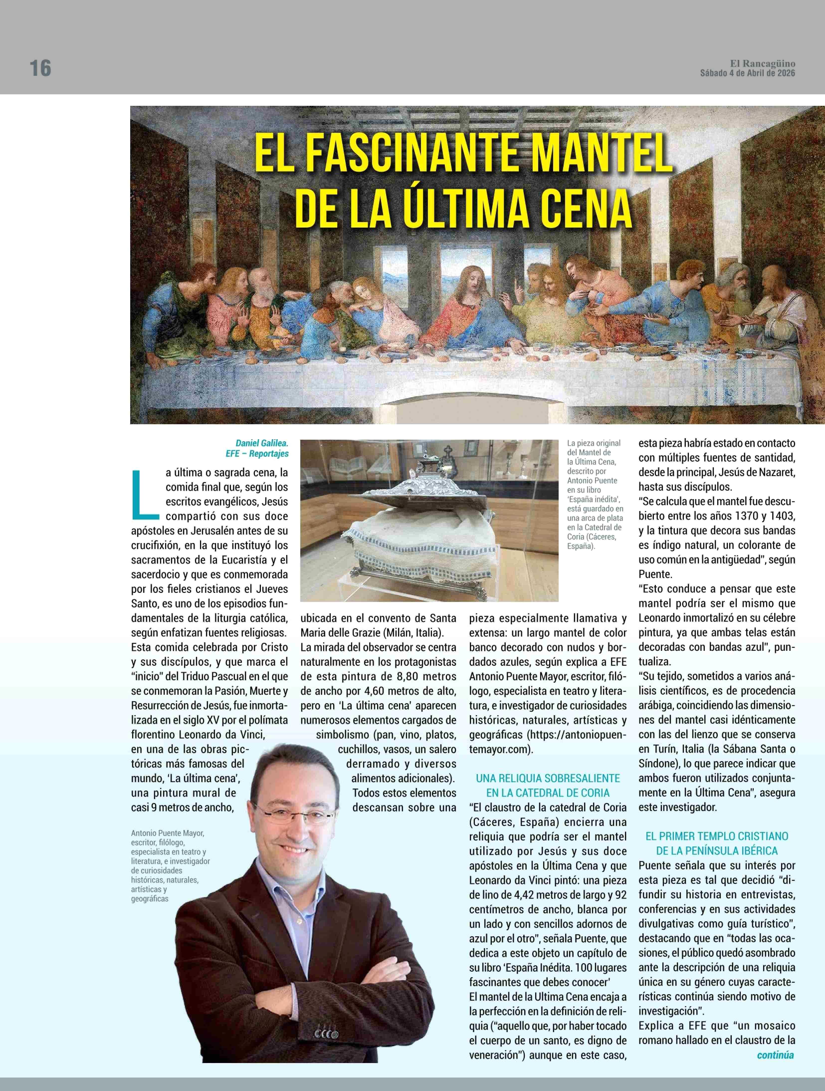 EL FASCINANTE MANTEL DE LA ÚLTIMA CENA” 04-04-2026 El Rancagüino |