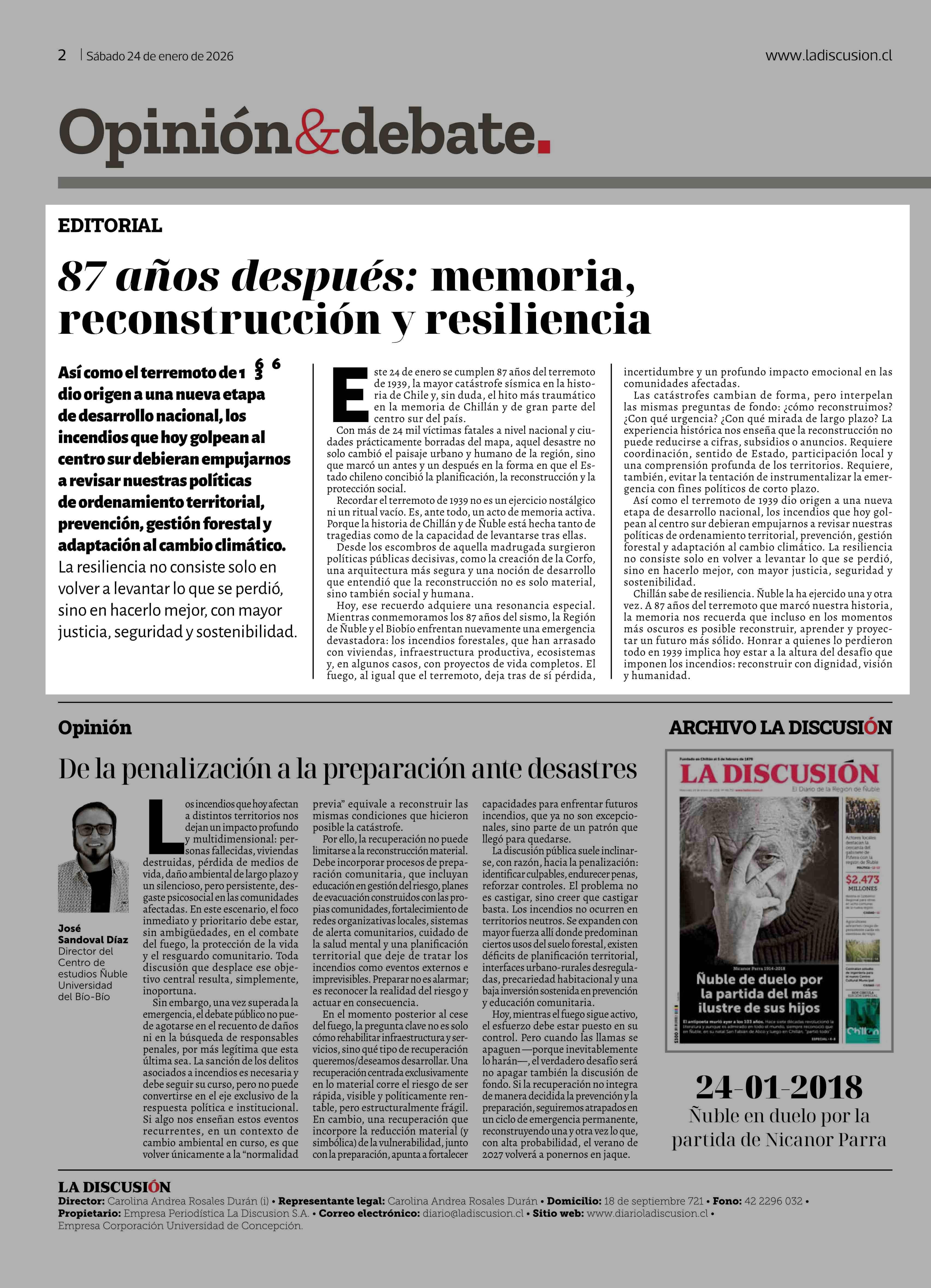 Editorial: 87 Años después: memoria, reconstrucción y resiliencia 24-01-2026 La Discusión |