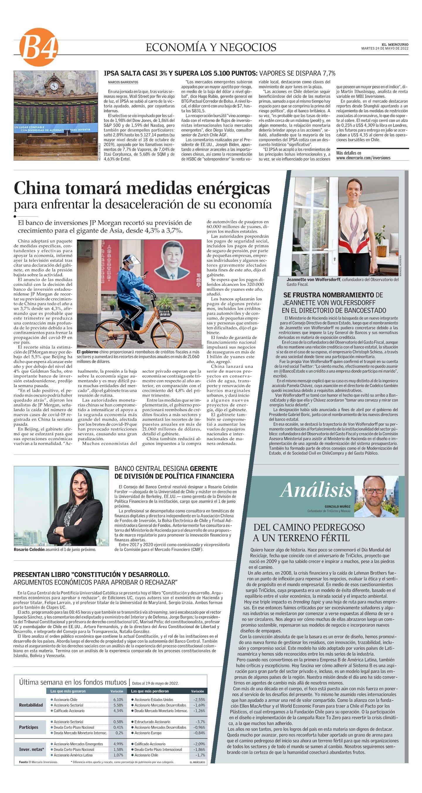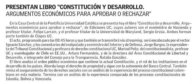 PRESENTAN LIBRO "CONSTITUCIÓN Y DESARROLLO. ARGUMENTOS ECONÓMICOS PARA APROBAR O RECHAZAR” 24-05-2022 El Mercurio |