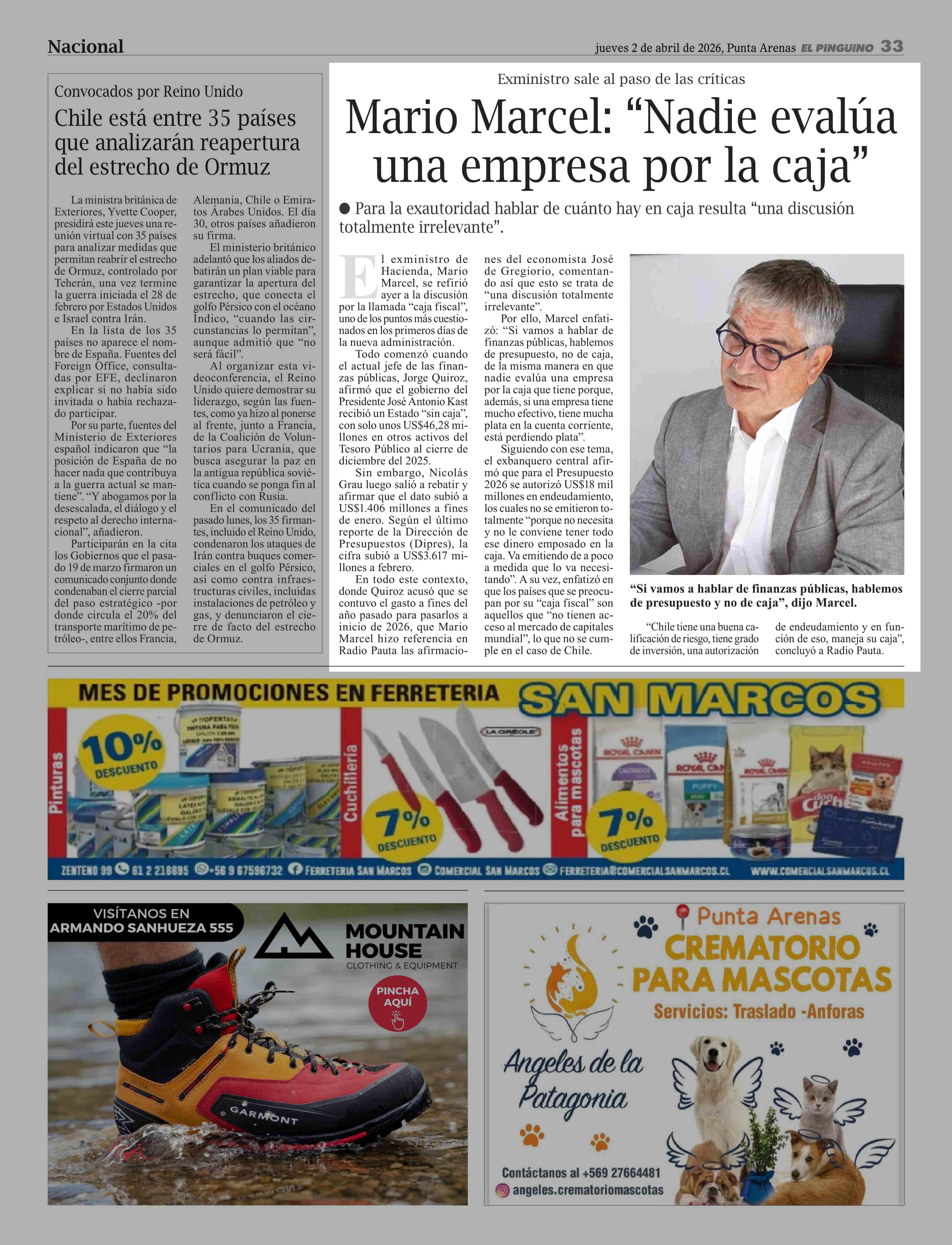 Mario Marcel: “Nadie evalúa una empresa por la caja” 02-04-2026 El Pingüino |
