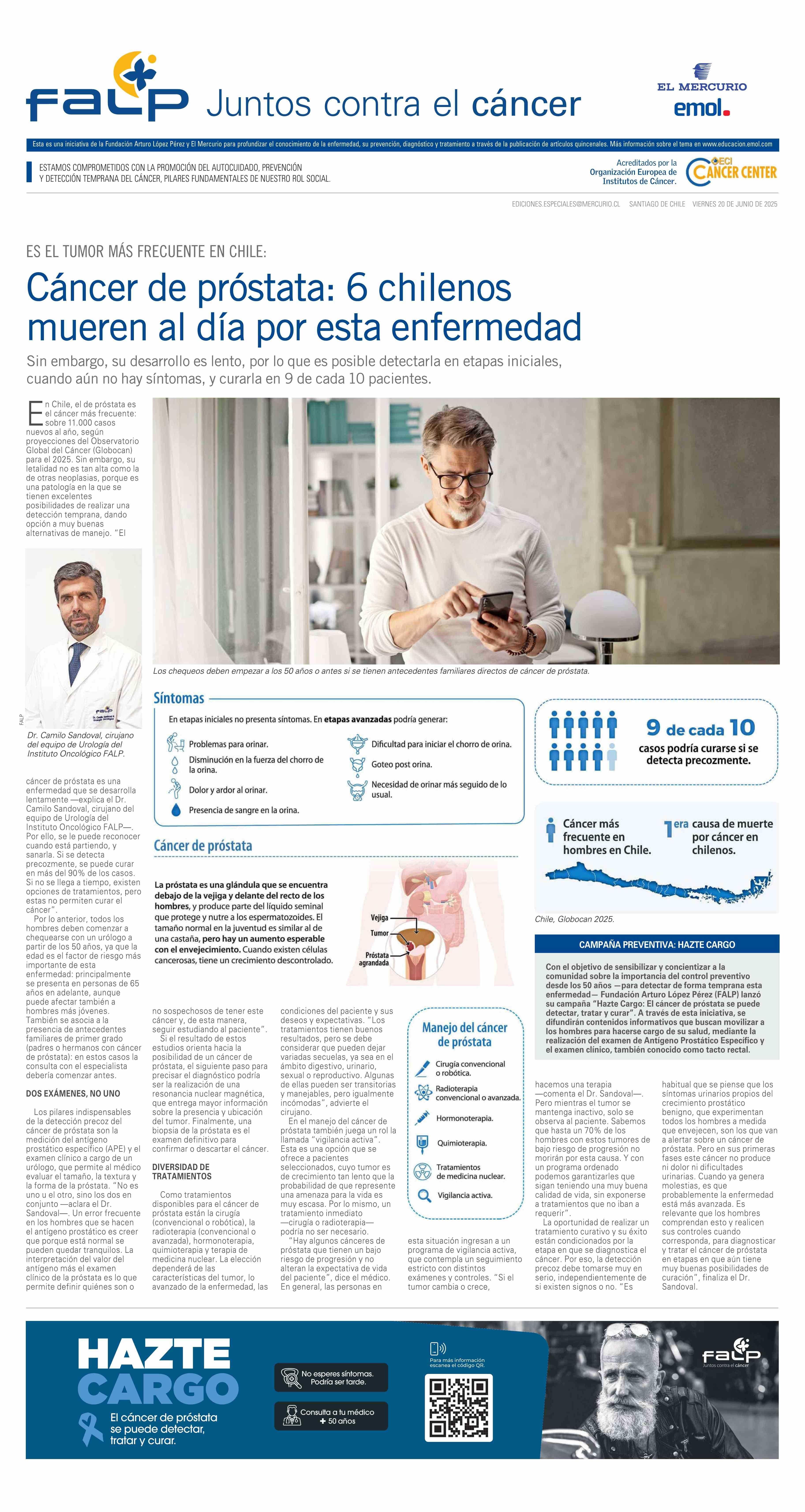 Cáncer de próstata: 6 chilenos mueren al día por esta enfermedad 20-06-2025 El Mercurio |