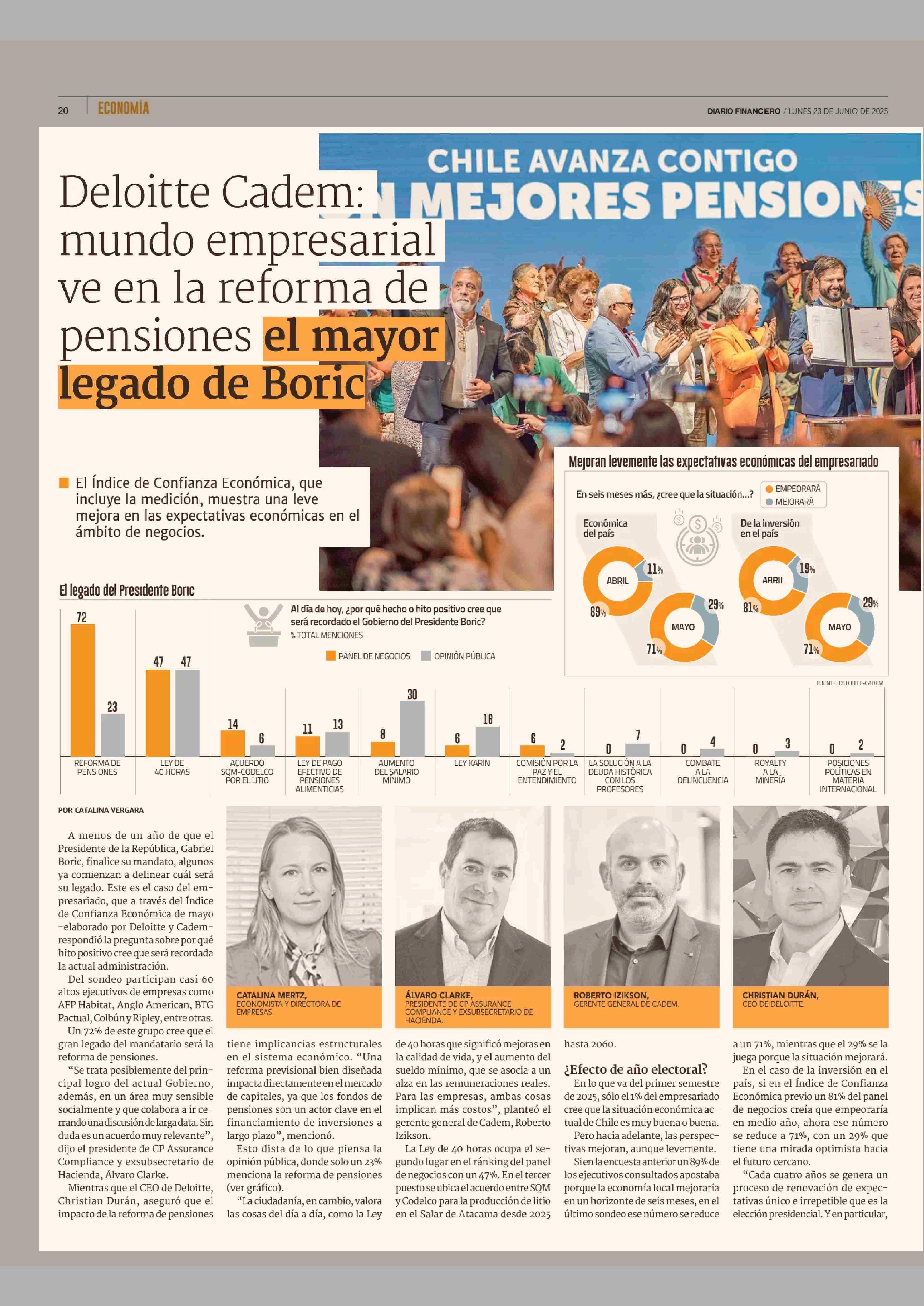 Deloitte Cadem: mundo empresarial ve en la reforma de pensiones el mayor legado de Boric 23-06-2025 Diario Financiero |