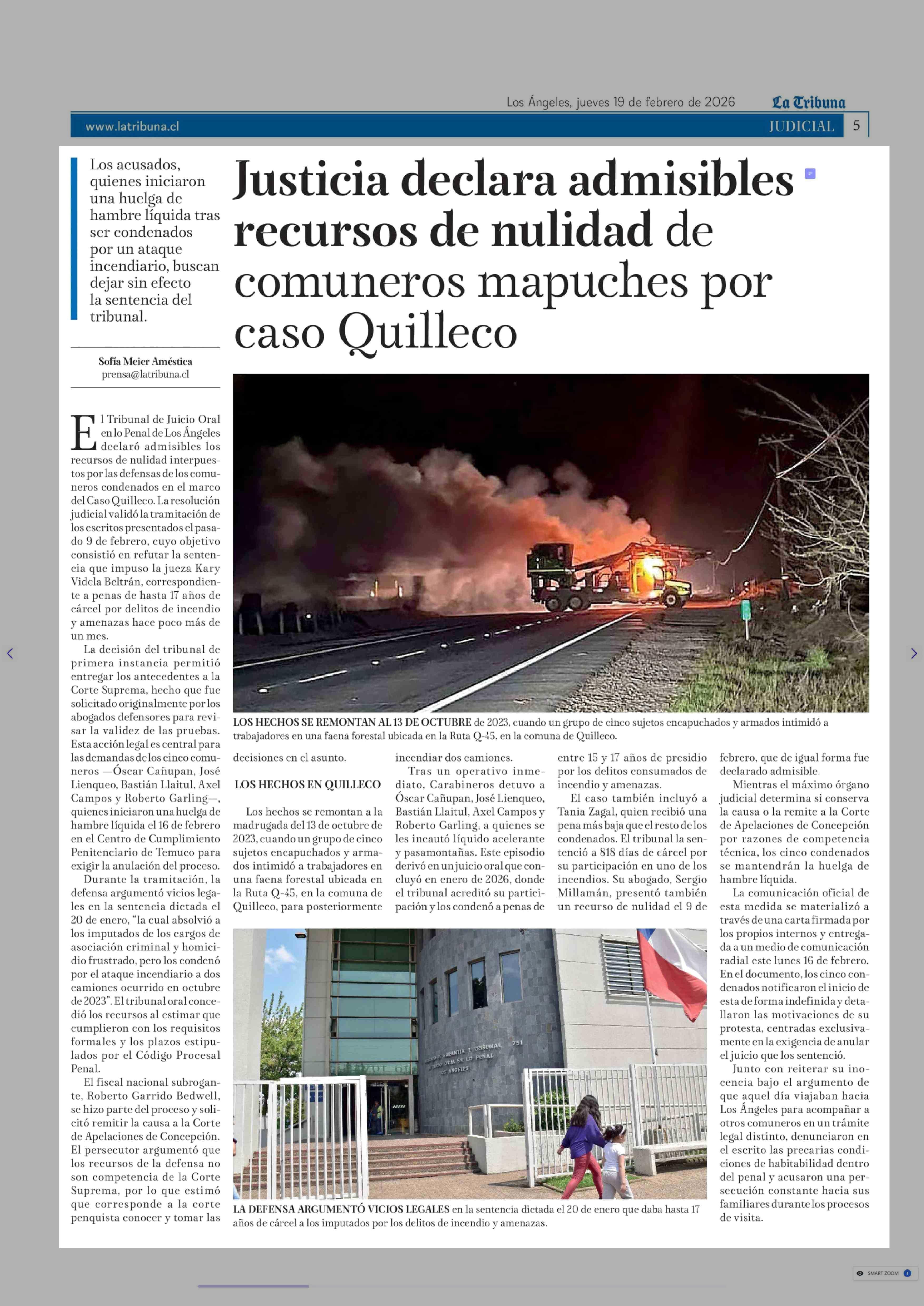 Justicia declara admisibles recursos de nulidad de comuneros mapuches por caso Quilleco 19-02-2026 La Tribuna |