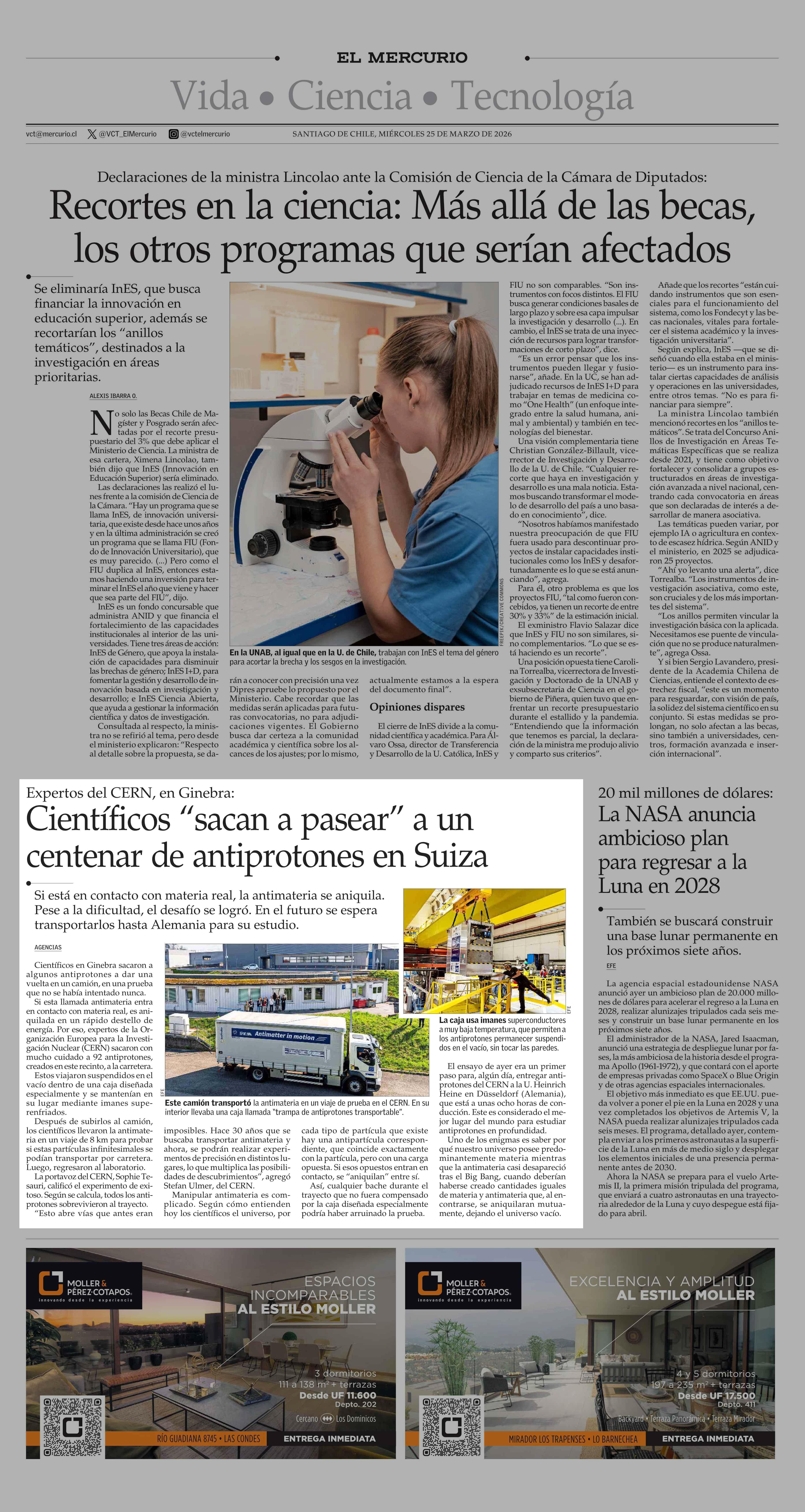 Científicos “sacan a pasear” a un centenar de antiprotones en Suiza 25-03-2026 El Mercurio |